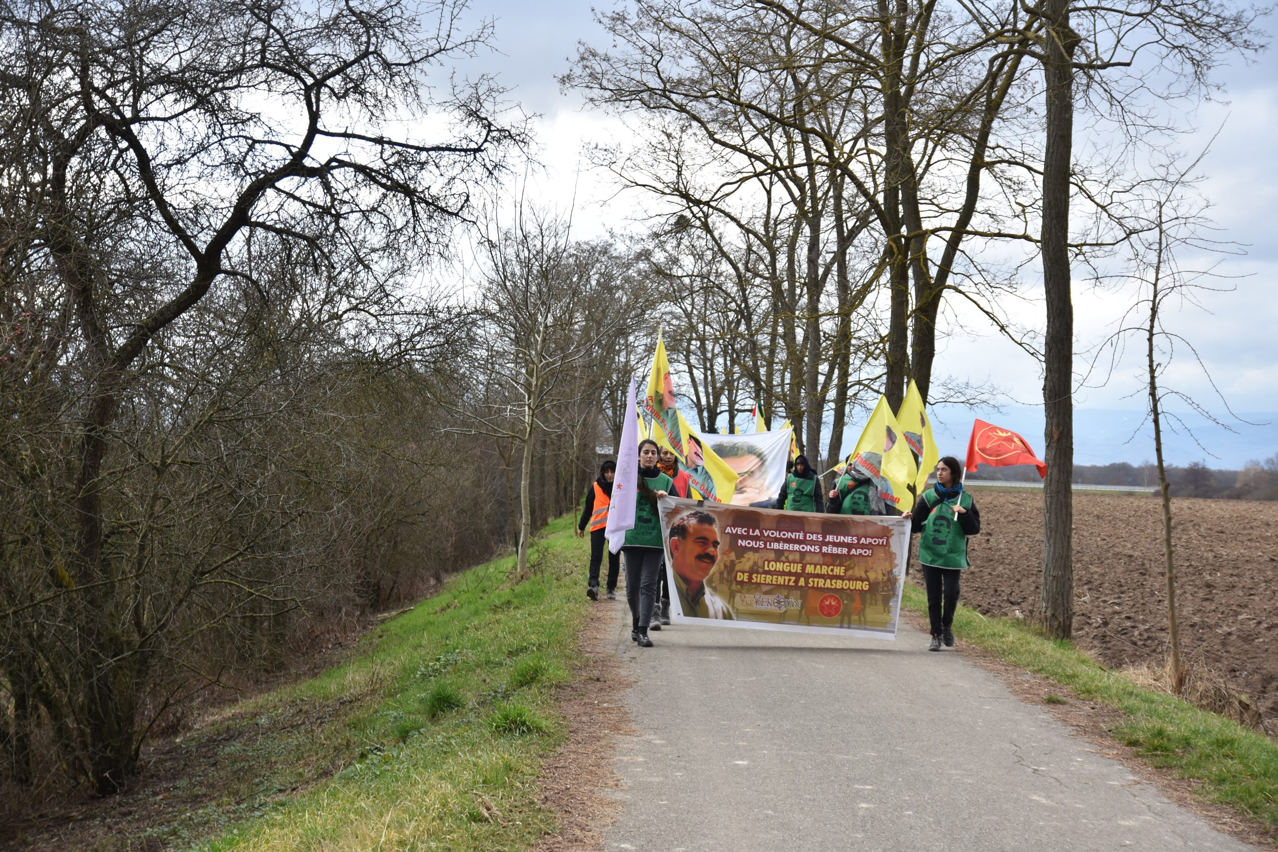 Halklar Önderi Abdullah Öcalan‘ın fiziki özgürlüğü talebiyle Uzun Yürüyüş düzenleyen TCŞ (Tevgera Ciwanên Şoreşger) ve TekoJIN(Jinên Ciwan ên Têkoşer) aktivistleri eylemin beşinci gününde „Werin Cenga Azadiyê“ hamlesi kapsamında Sélestat kasabasında başladı.