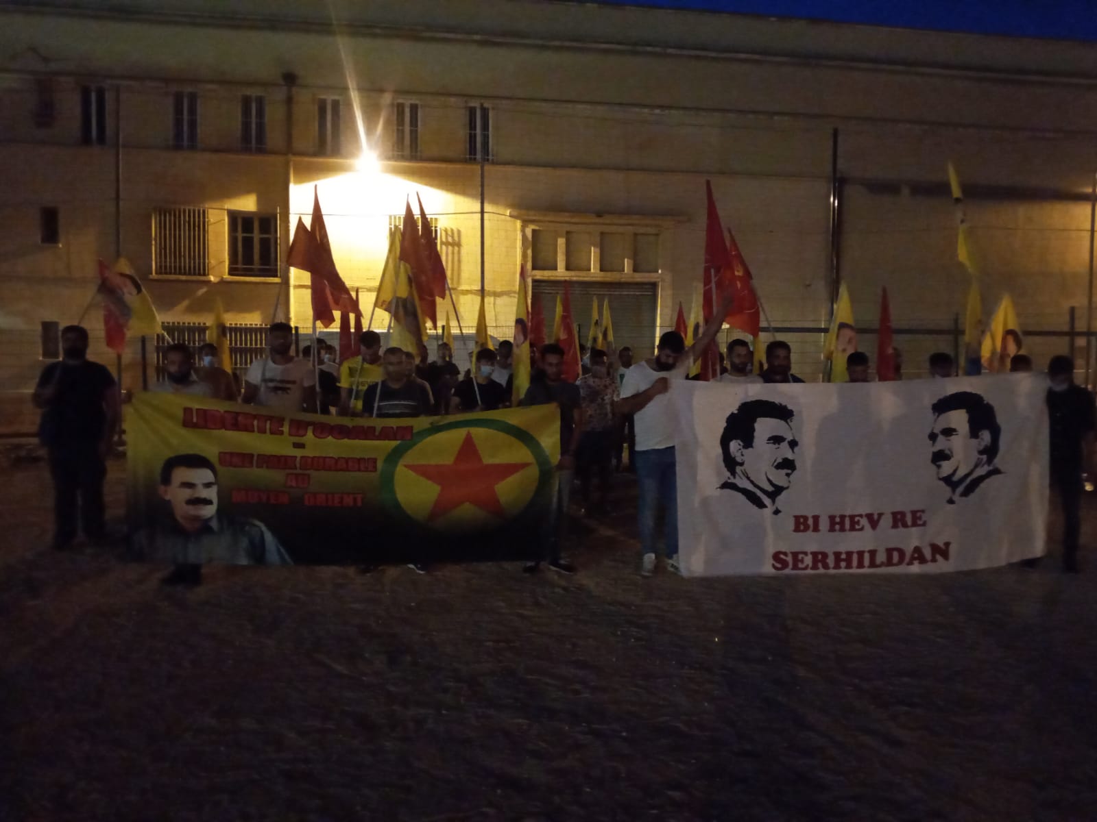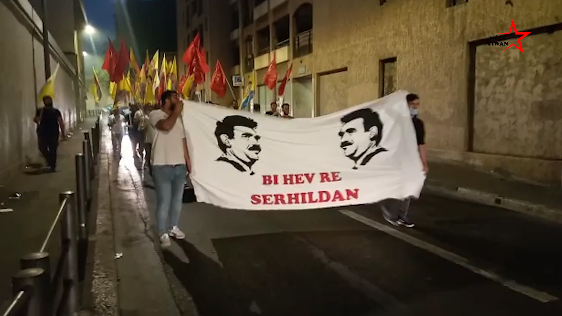 26 Ağustos akşam saatlerinde ‘Bi Hev Re Serhildan’ hamlesi kapsamında Belle de Mai’de bir araya gelen gençler, buradan yürüyüşe başladı. Halklar Önderi Abdullah Öcalan üzerinde uygulanan ağırlaştırılmış tecrit durumunu protesto etmek ve dikkat çekmek isteyen gençler, Halklar Önderi Abdullah Öcalan’ın siluetinin çizildiği ve üzerinde ‘Bi Hev Re Serhildan’ yazan pankartın arkasında bayrak ve posterlerle yürüdü. Şehir içerisinde yapılan yürüyüşte Fransızca ve Kürtçe sloganlar ile Türk faşizmi protesto edilirken Halklar Önderi Abdullah Öcalan’ın özgürlüğüne dikkat çekildi. Sarı, kırmızı ve yeşil renkli dumanların görsel farklılık yarattığı yürüyüşte gençlerin öfkesi atılan sloganlara da yansıdı.