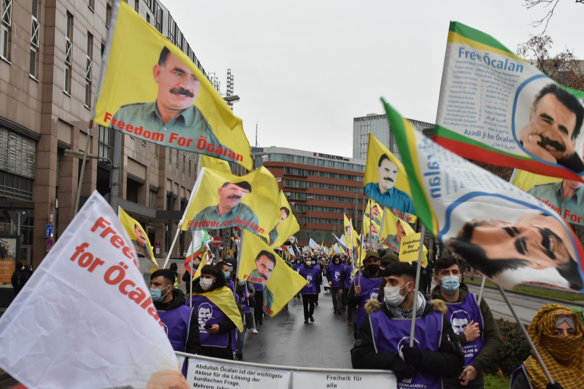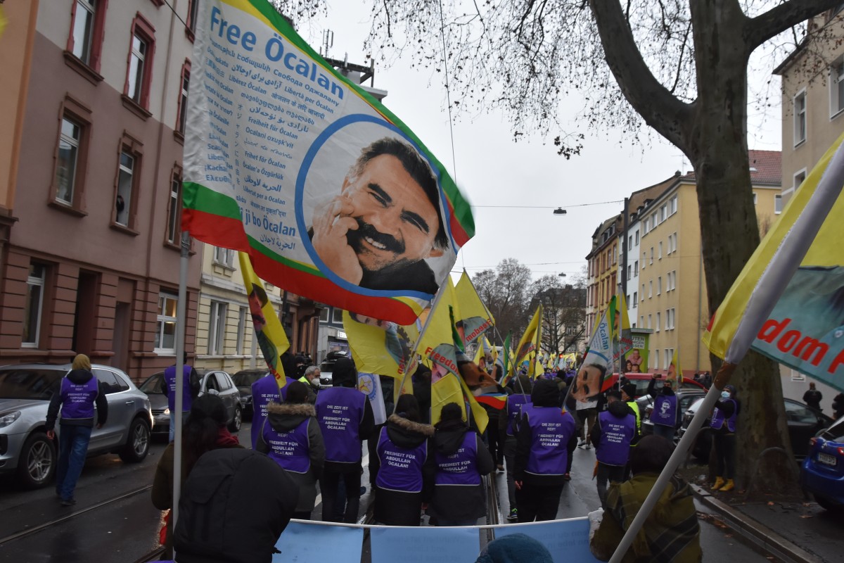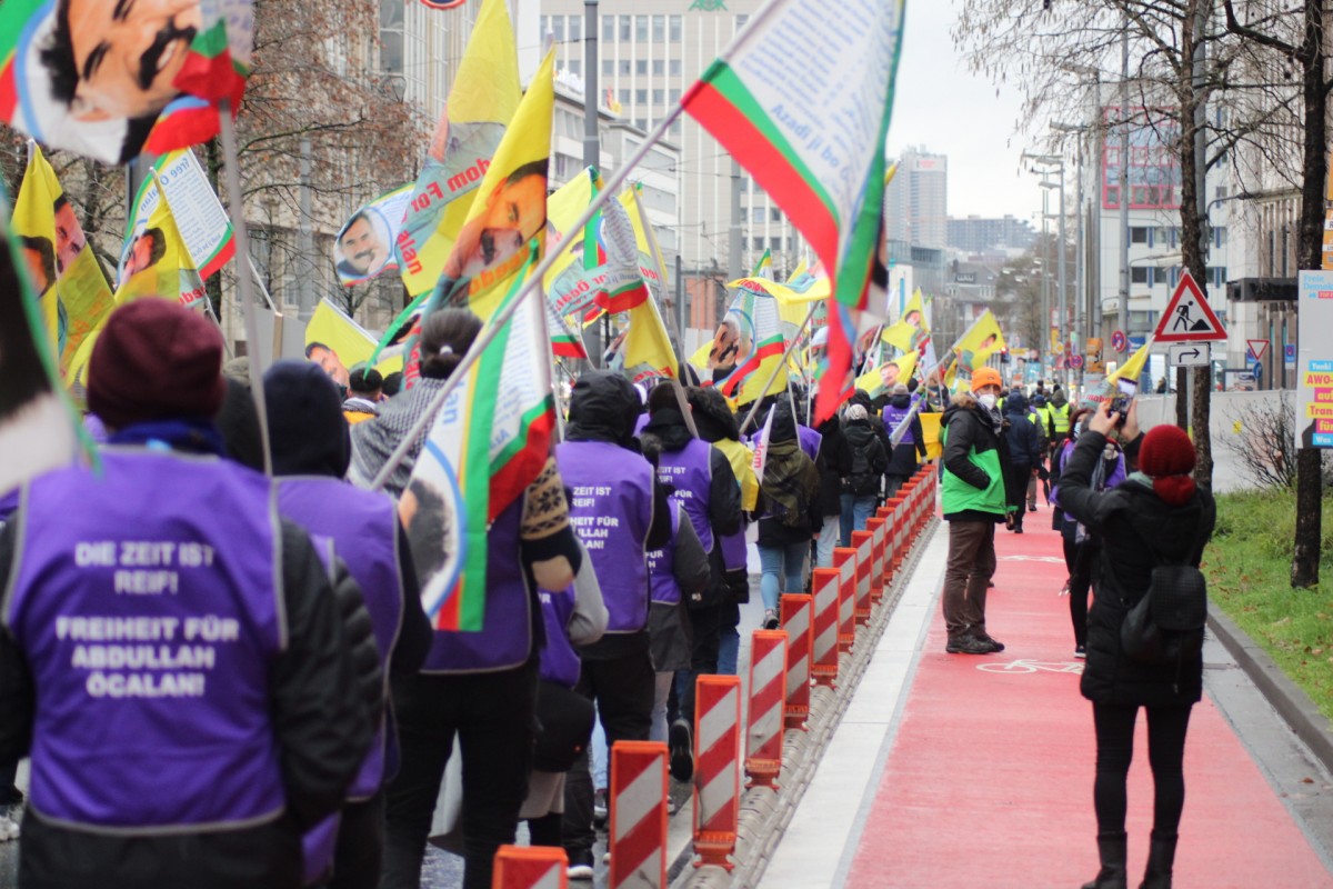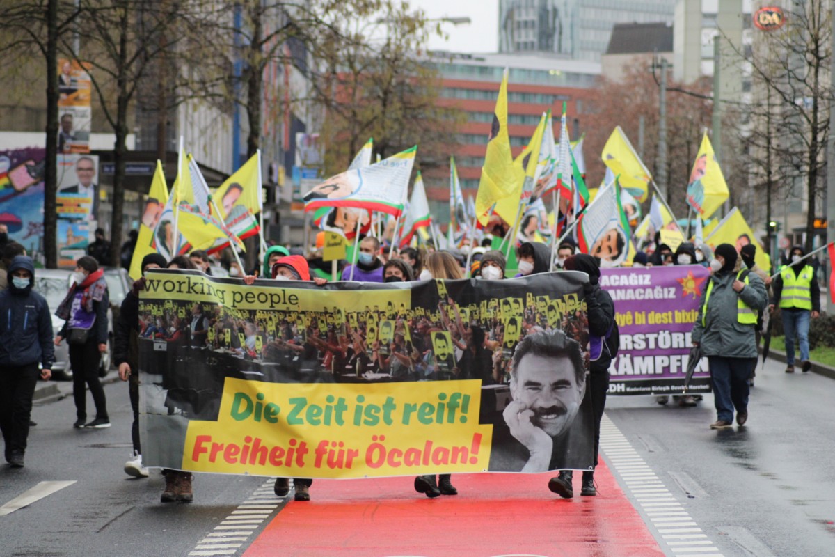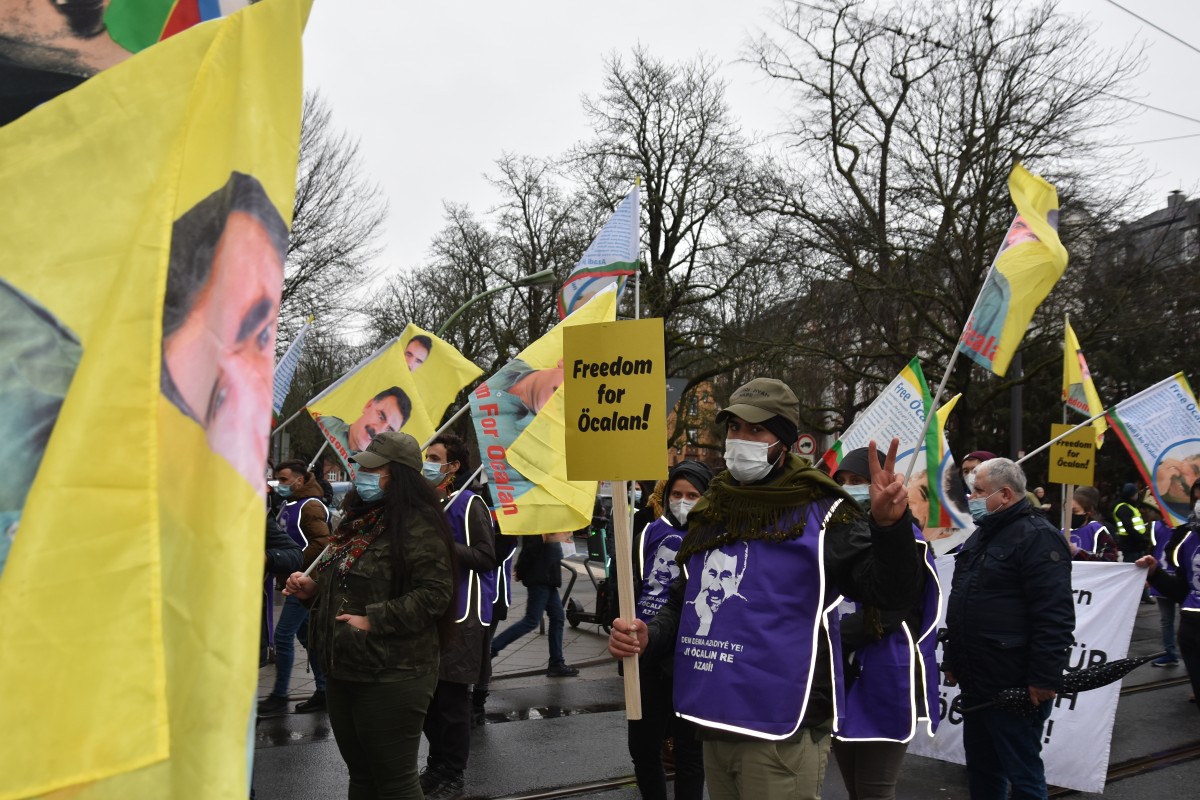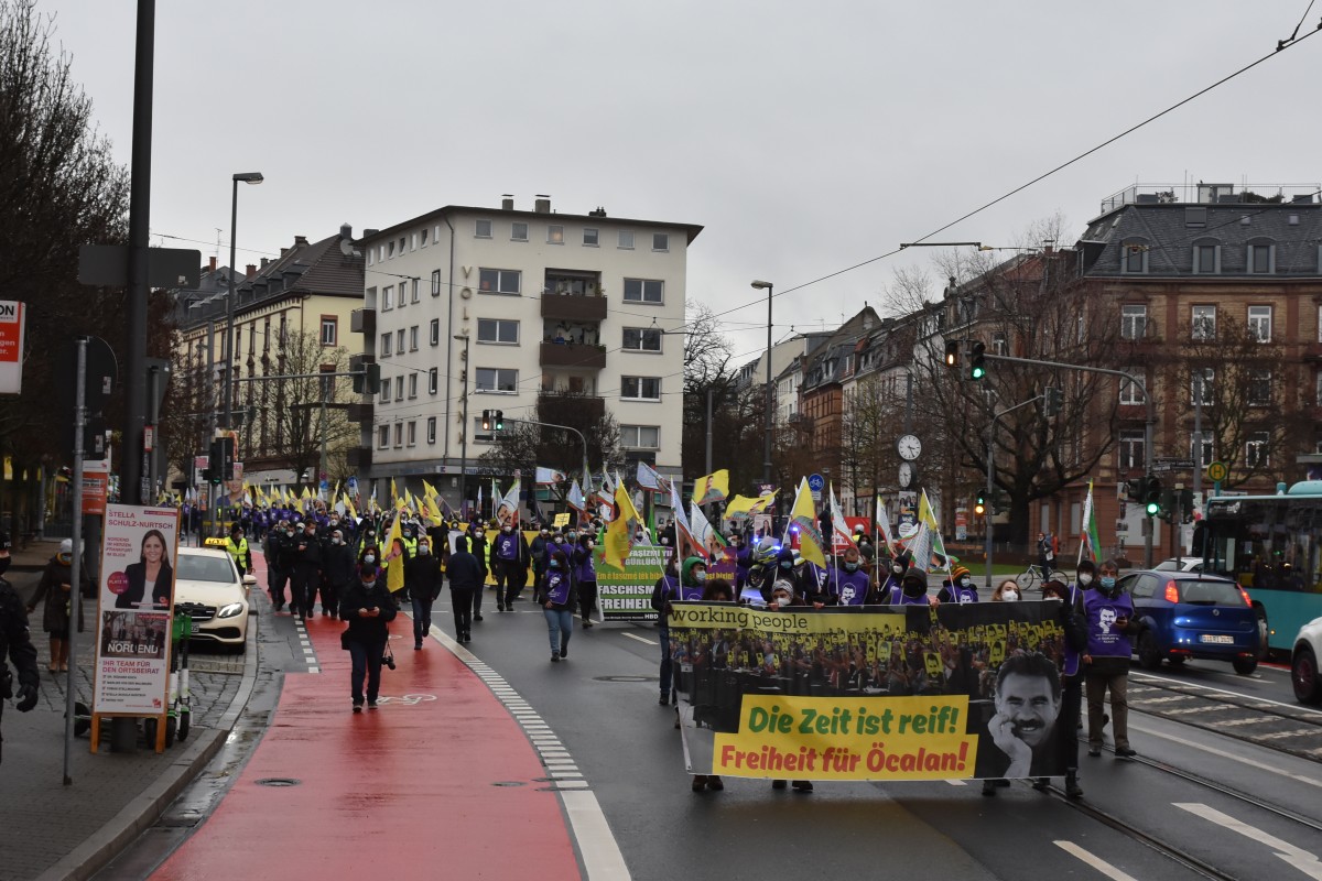 Büyük bir coşkuyla süren yürüyüş, çevredeki insanların da ilgisini çekerken, yürüyüş boyunca Almanca ve Kürtçe, “Es lebe Öcalan”, “Bijî Serok APO”, “Bijî Berxwedana Zindana”, “Hoch die Internationale Solidarität”, “Bi Hev Re Serhildan”, “Weg mit dem Verbot der PKK” sloganları atıldı.