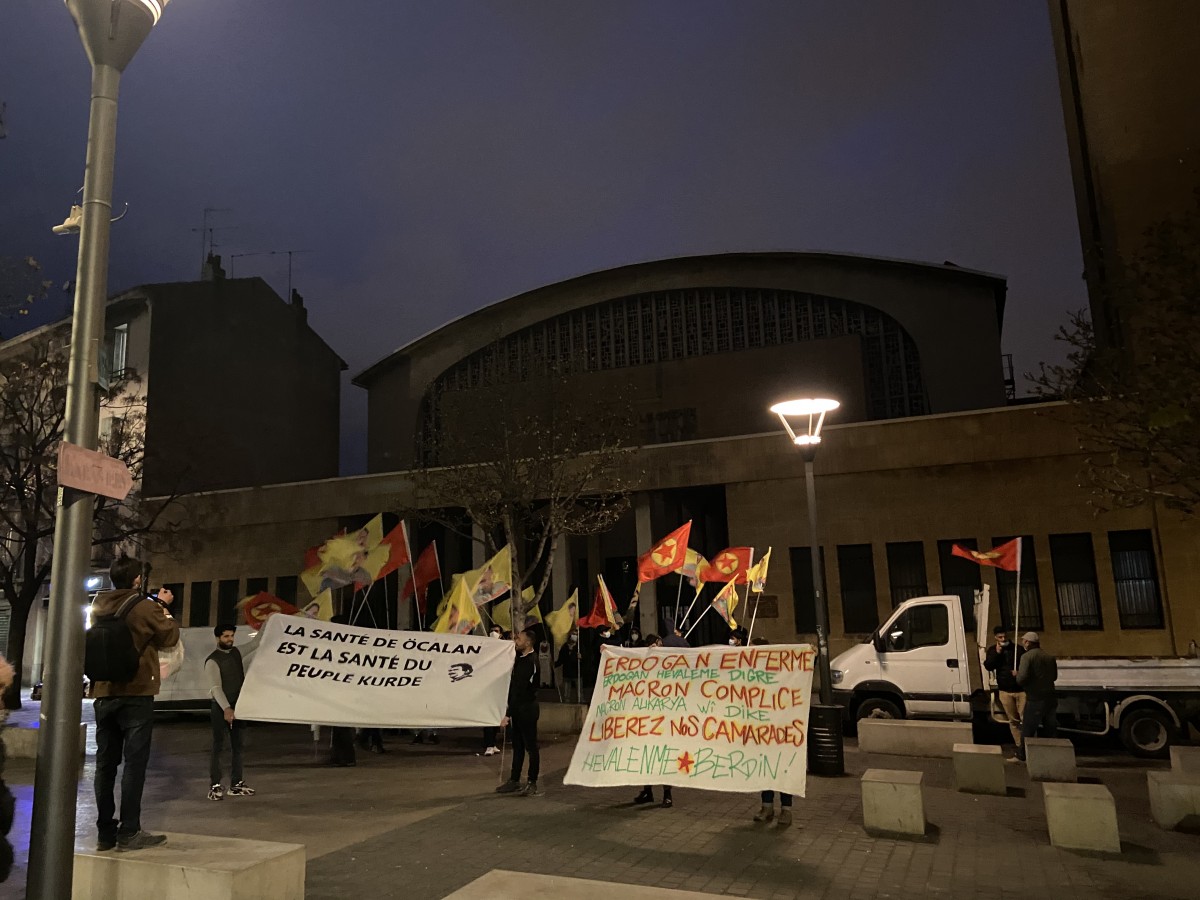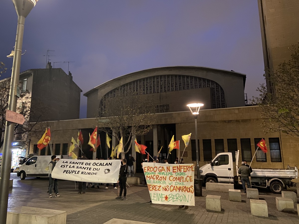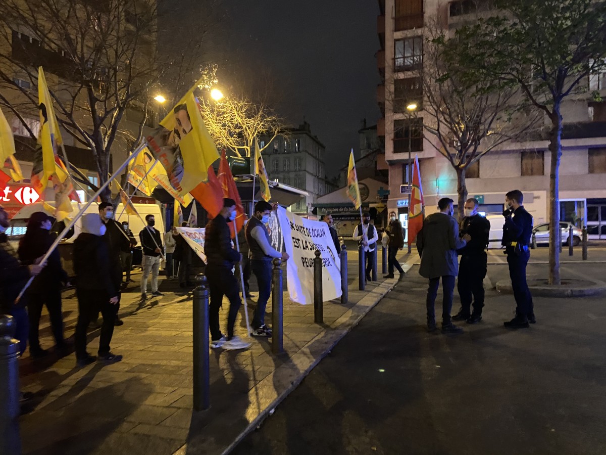 Gençler sık sık ‘Bîji Serok APO’, ‘Bê Serok Jiyan Nabe’, ‘Faşist Erdogan’ sloganlarını attılar. ‘Öcalan’a Özgürlük, Kürdistan’a statü’ sloganlarını atarlarken, Erdoğan ve Macron hükümetlerinin Kürt karşıtı politikada yaptıkları işbirliğini protesto eden pankart açtılar.