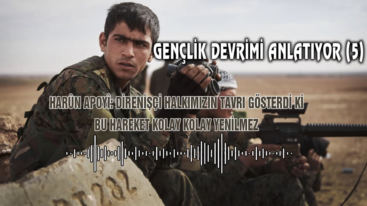 QAMIŞLO – Bir toplumun geleceğini belirleyen ve buna öncülük eden her zaman o toplumun gençliği olmuştur. 19 Temmuz Rojava Devrimi’ne öncülük eden de gençlik oldu. Rojava devrimi sürecinde yerini alan genç, öncü komutanlardan Harun Apoyî bizlere 5 bölümde gençliğin devrimdeki rol ve misyonunu bir kere daha anlattı.