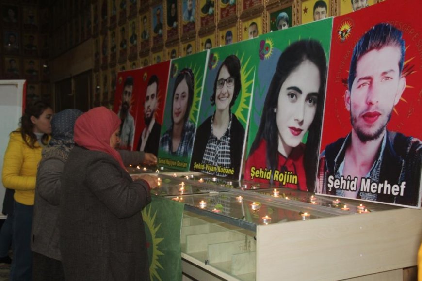 KOBANÊ- Genç Kadınlar Birliği Üyeleri; Viyan Kobanê, Nujiyan Öcalan ve Rojin Ehmed İsa ile Suriye Devrimci Gençlik Hareketi üyeleri Welid Mihemed Menal, Murhef Xelil İbrahim ve Mesûd İbrahim, 2 yıl önce işgalci Türk devletinin Kobanê’deki merkezlerine yönelik hava saldırısında şehit olmuştu.