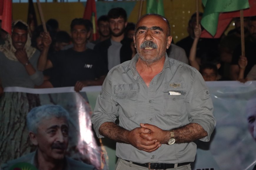 “Türk devleti yüzyıllardır Kürt halkına vahşice bir şekilde saldırıyor. Amaç Kürt halkını, bu örgütü ve bu fikri yok etmek. 50 yıldan fazla bir süredir sürekli olarak Zap, Metina, Avaşin, Xakurke’deki Kürdistan dağlarına bütün teknolojisiyle, tüm gücüyle, kimyasal silahlarla saldırıyor. Ama bugün şehitler sayesinde, Önder APO’nun fikirleri ve felsefesi sayesinde, gençlerimizin direnişi ve mücadelesiyle, Kürdistan İşçi Partisi’nin ısrarıyla ve cesaretiyle, güçlü bir mücadeleyle 50 yıldır Türk devletinin işgaline direndik. Bunu hepimiz çok iyi biliyoruz, Türk devleti ekonomik, askeri ve siyasi olarak zayıfladı, yenildi. Bu yüzden 27 Şubat’ta Önder APO’ya yöneldi. Bunun için de Önder APO, ‘Geç kaldınız ama ben bu süreci üstleneceğim’ dedi. Önder APO, Barış ve Demokratik Toplum çağrısını yaptı. Önder APO çok büyük bir yük üstlendi. Bu temelde biz Kuzey ve Doğu Suriye halkı olarak, Kürdistan’ın dört parçasındaki halklar olarak, Ortadoğu halkları olarak bu çağrıya kulak vermeliyiz, bu yükü sadece Önder APO’nun omuzlarına bırakmamalıyız.
