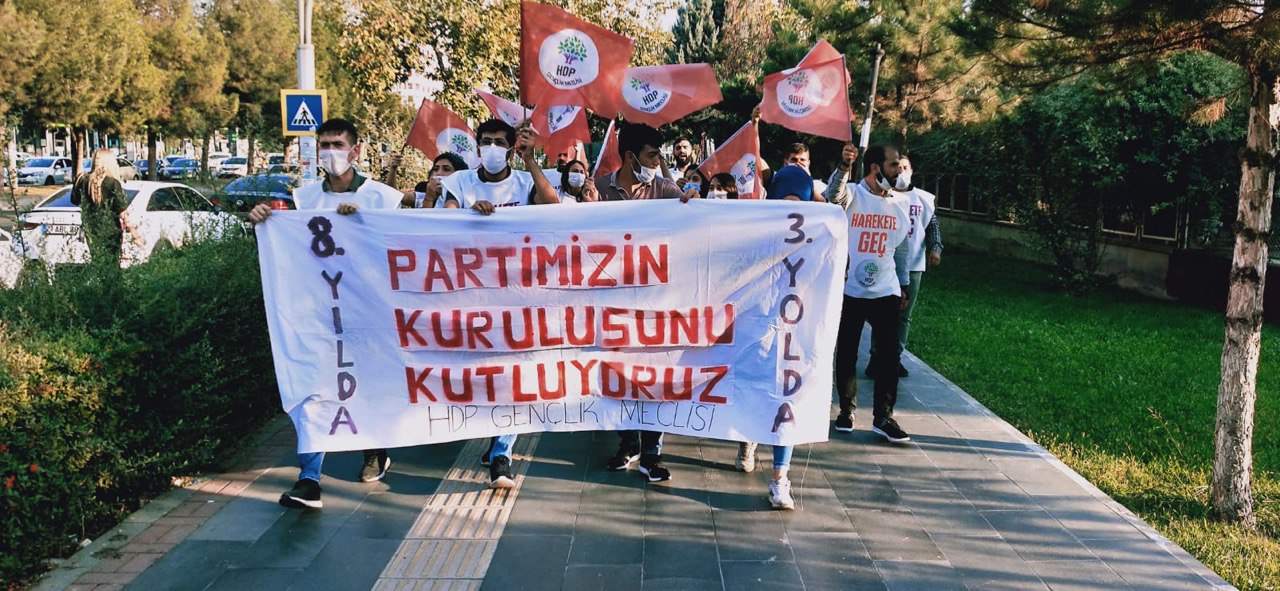 Gençler yürüyüşlerinde Partimizin Kuruluşunu Kutluyoruz pankartı ve ”HDP Umuttur, Umut Dimdik Ayakta, HDP Halktır Halk Burada” gibi sloganlar attılar.