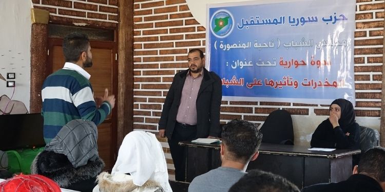 Suriye Gelecek Partisi Gençlik Meclisi, Mensora beldesinde “Uyuşturucu ve gençler üzerindeki etkisi” konulu panel düzenledi.