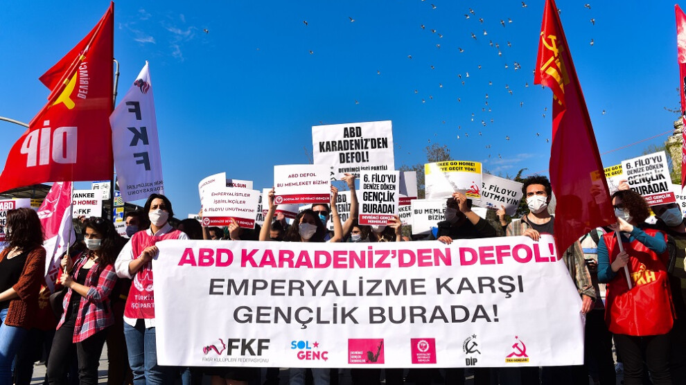 İSTANBUL – Gençlik örgütleri, ABD’ye ait 2 savaş gemisinin Türkiye boğazlarından Karadeniz’e yapacağı geçişini, 6. Filo’nun denize döküldüğü Dolmabahçe’de protesto etti.