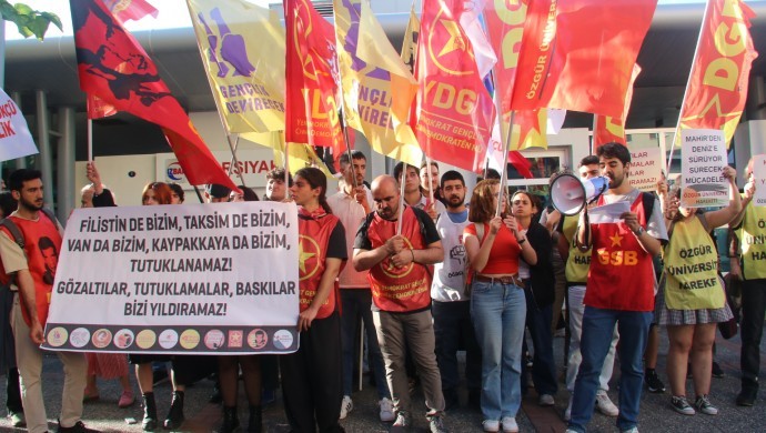 İZBAN önünde gençlik örgütleri adına konuşan Genç Sosyalistler Birliği (GSB) üyesi Yusuf Metin Karakaya, 1 Mayıs’ta Taksim Meydanı’na çıkmak isteyen 49, İzmir’de ise Wan eylemine katılan 9 kişinin tutuklandığını anımsattı. 18 Mayıs’ta ise 4 kişinin, İbrahim Kaypakkaya’nın adını alanlara taşıdıkları için tutuklandığını belirten Karakaya, “Yine bu süreçte ‘İsrail ile ilişkiyi kes’ dedikleri için 5 arkadaşımız tutuklandı. Burjuva siyaset arenasında yumuşama tartışıladursun, işçi ve emekçilerle, ezilen halklarla ve onların yanında duran devrimcilere karşı ‘yumuşamanın’ ne anlama geldiğini birkaç haftalık süreçte herkes görmüş oldu” dedi.