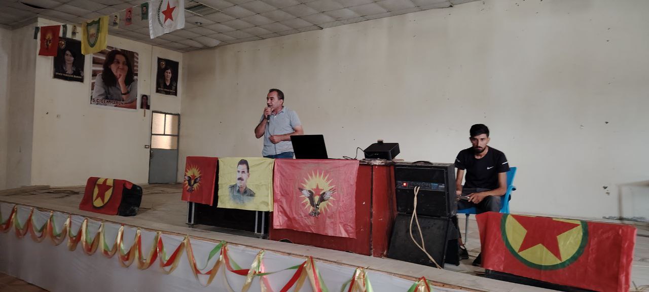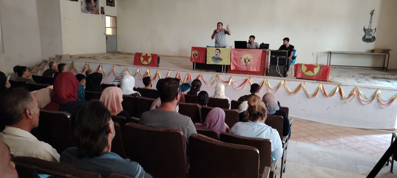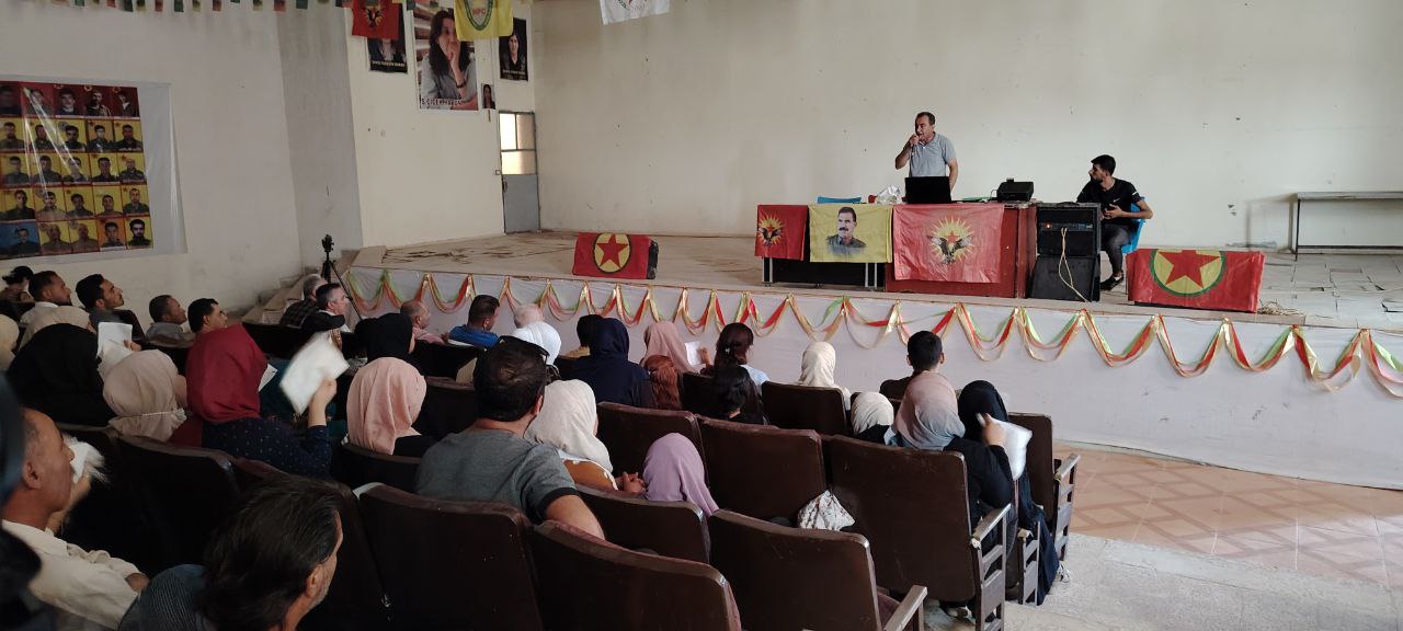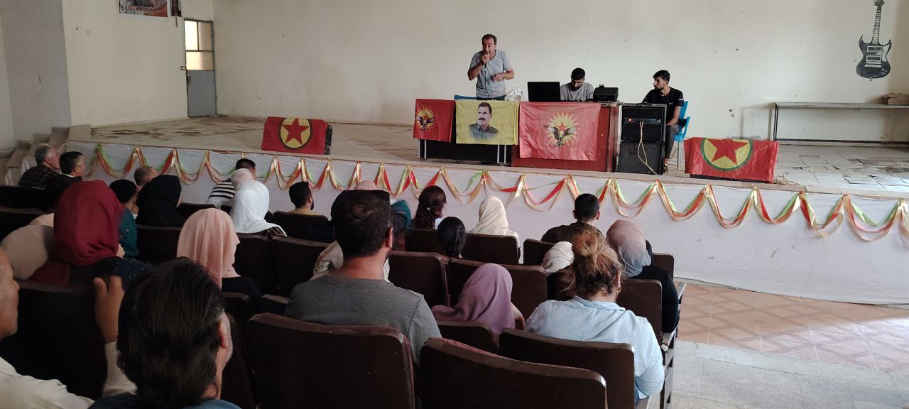 QAMİŞLO – Qamışlo’ya bağlı Çilaxa ilçesinde Devrimci Gençlik Hareketi ve Genç Kadınlar Birliği, devrimci halk savaşı konulu seminer gerçekleştirdi. Seminer Çilaxa kentindeki Kültür Sanat Merkezi salonunda gerçekleştirildi. Eyleme, onlarca genç ve kent sakinleri katıldı.