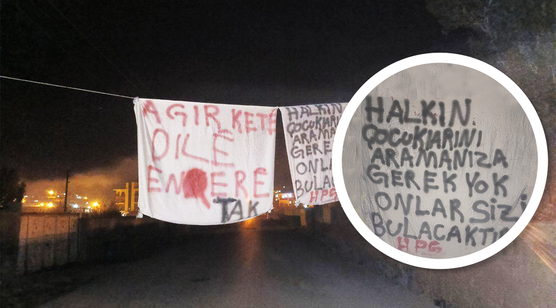 Yurtsever Gençler, 23 Ekim 2024 günü Kürt ve Ortadoğu halklarını katleden silahların üretildiği Ankara’daki TUSAŞ yerleşkesine dönük fedai eylem gerçekleştiren Ölümsüzler Taburu’nun APO’cu fedaileri Asya Ali ve Rojger Hêlîn’nin gerçekleştirdiği eylemi selamlamak için Gever’in Kışla Mahallesinde ”Agir Kete Dilê Enqerê” ve ” Halkın Çocuklarını Aramanıza Gerek Yok, Onlar Sizi Bulacaktır” yazılı pankartları astılar.