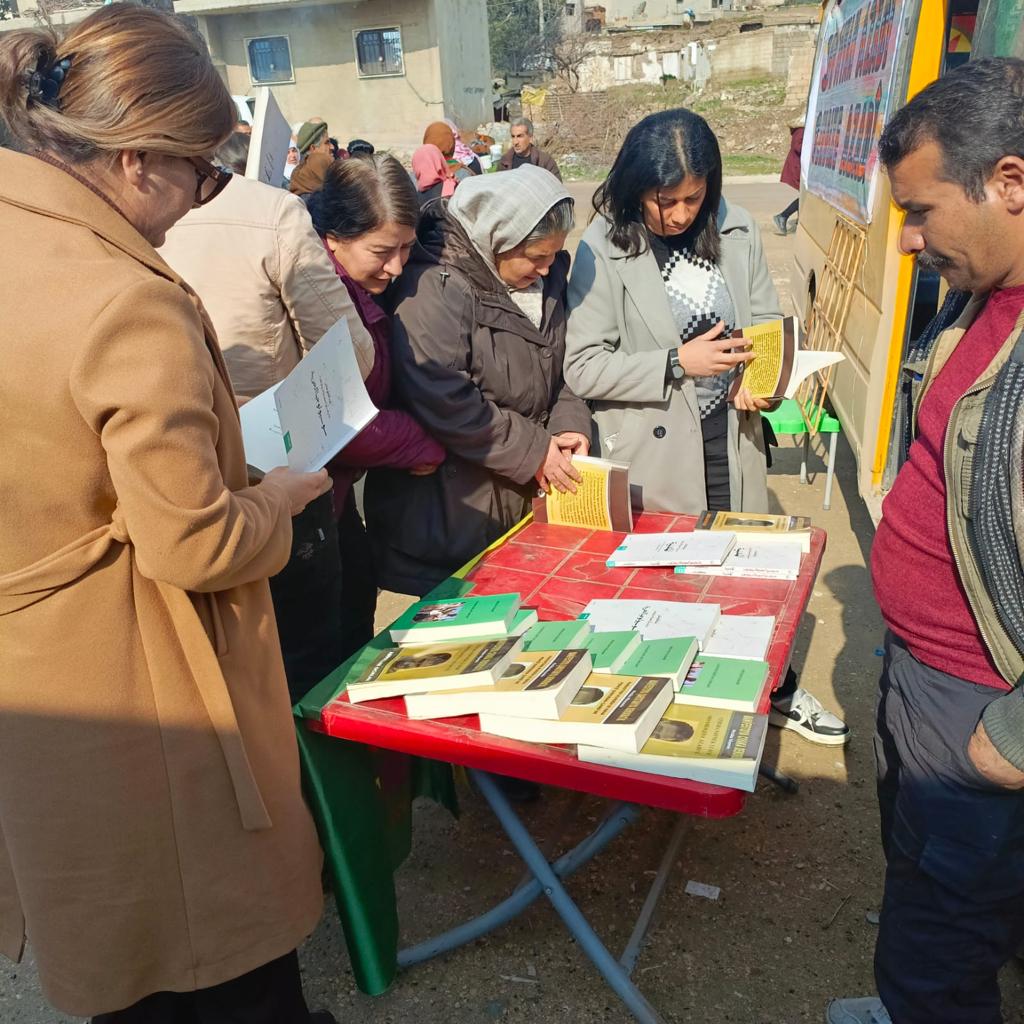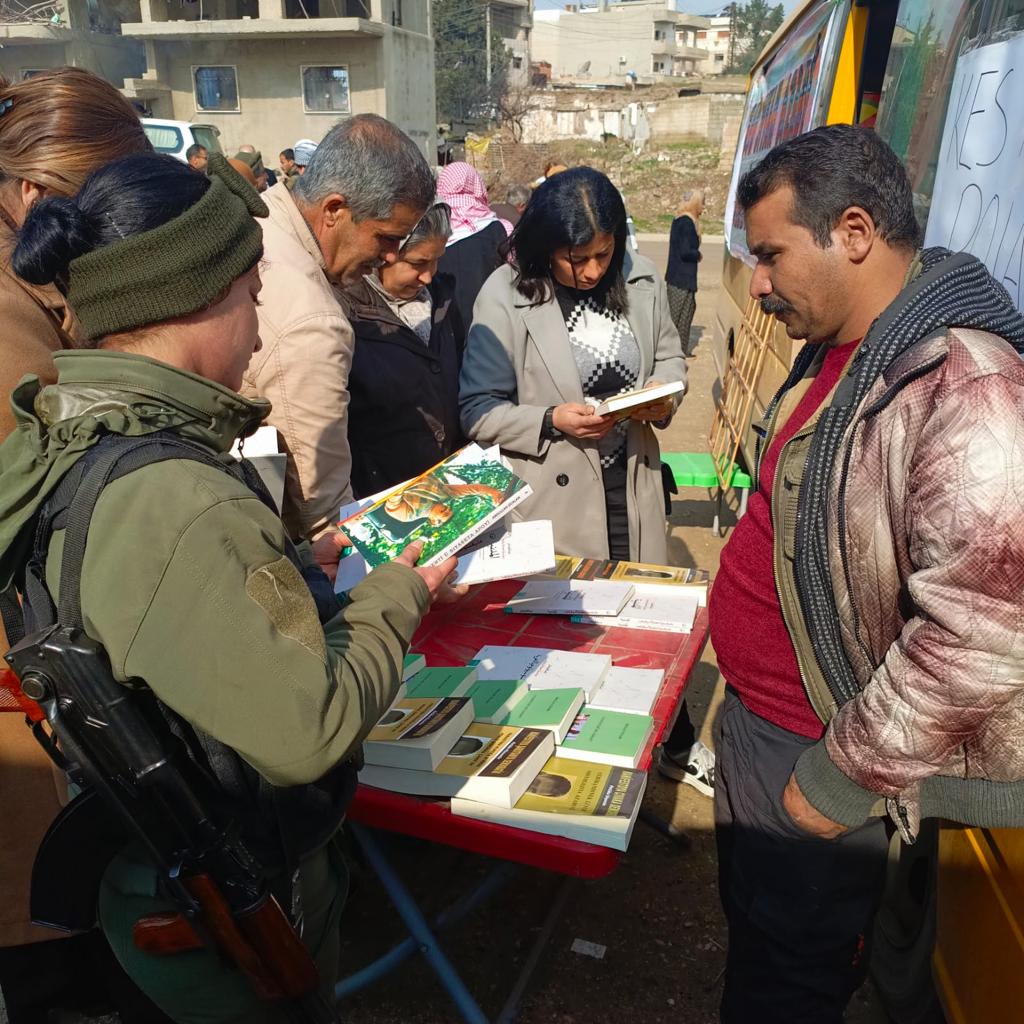 Gençler ve çevre halkı tarafından büyük bir ilgi gören gezgin kütüphane etkinliğinde genç kadınlar tarafından komploya dair tiyatro etkinliği gerçekleştirildi. Ardından Önder Apo için şiirler söylenirken gençlere ve halka kitaplar dağıtıldı.