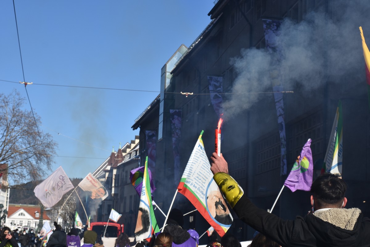“Tecride, Faşizme, İşgale Son: Bi Hev Re Serhildan: şiarıyla gerçekleştirilen 9 günlük uzun yürüyüş eylemi, Freiburg’da görkemli bir mitingin ardından halaylar ve sloganlarla sona erdi.