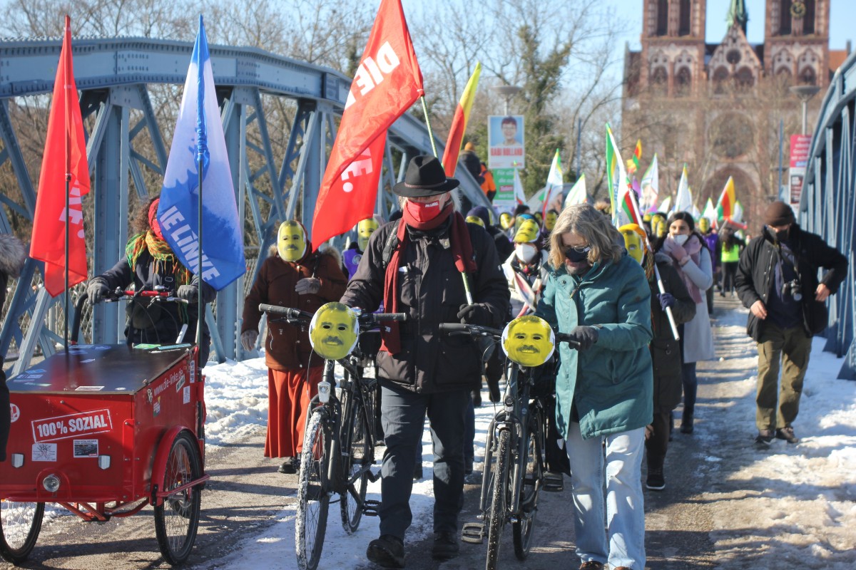 Öte yandan hazırlık komitesinden alınan bilgilere göre Avrupa’nın bir çok yerinde hazırlanan ve bugüne özel takılması için dağıtılan Önder Öcalan’ın maskelerine de tahammül edemeyen Alman polisler, Önder Öcalan’ın özgürlüğünün hedeflendiği bu yürüyüşü kasti bir saldırı ile maskelere tahammül edemediğini ve çıkarılmasını dayattılar.