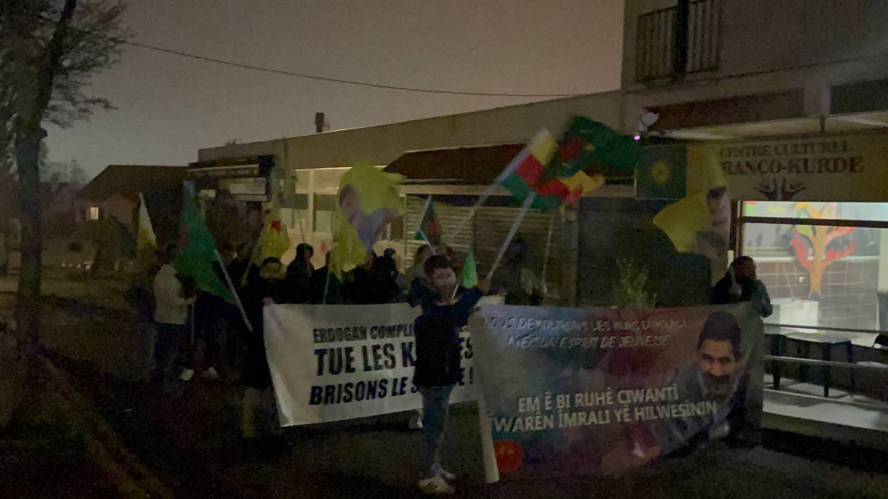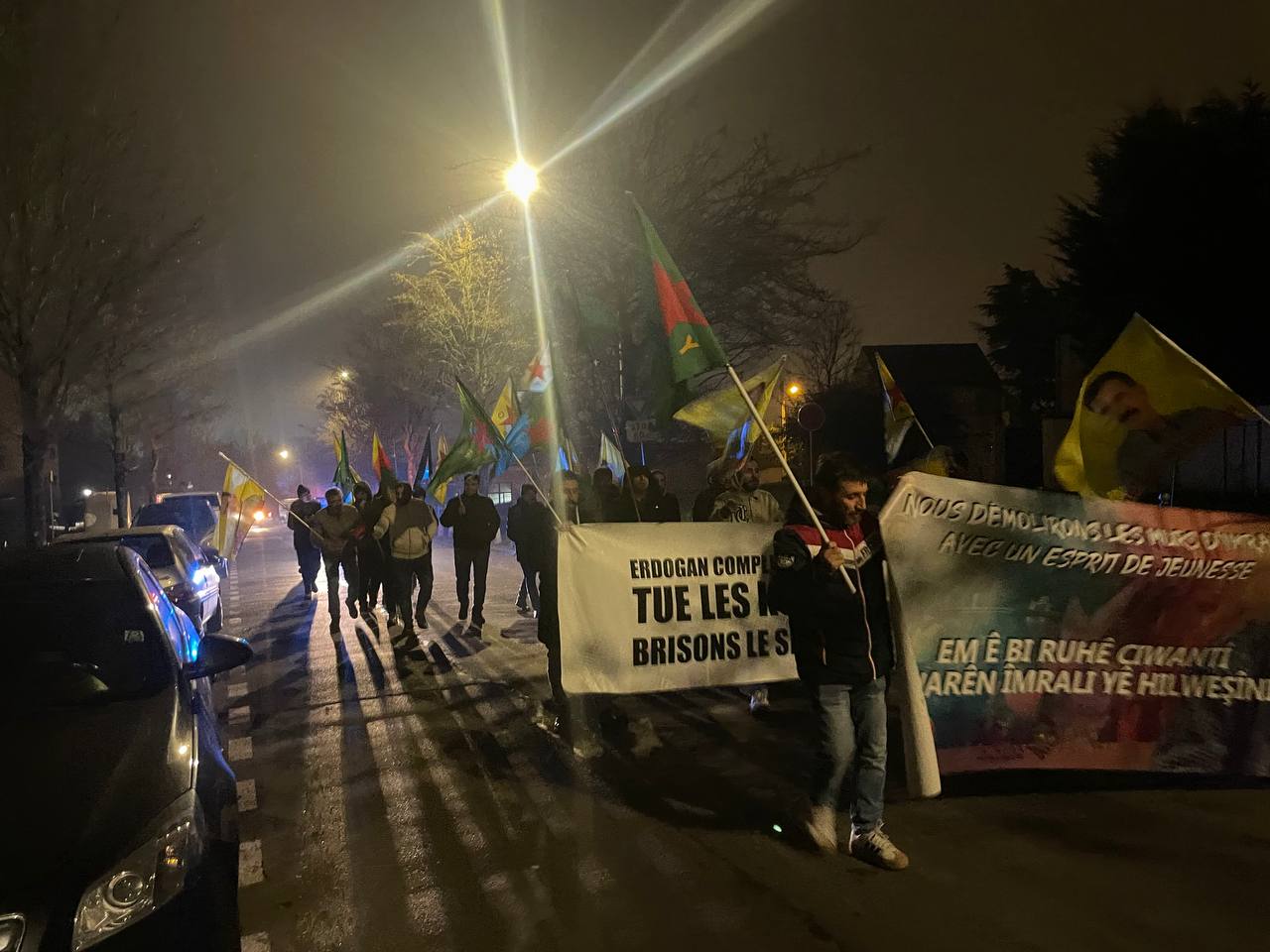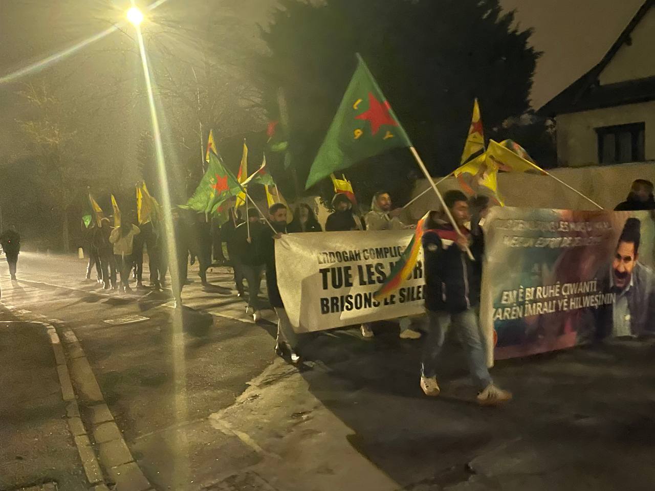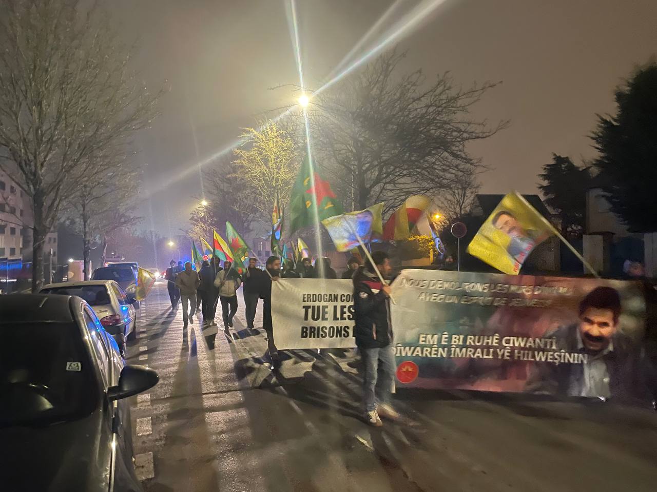 Grigny Demokratik Kürt Toplum Merkezi’nde (DKTM) önünde yürüyüşe başlayan gençler ve Kürdistanlılar, Grigny Merkez Tren Garına kadar yürüyüş eylemi gerçekleştirdi. Yürüyüş sonunda Kürdistan Devrim Şehitleri anısına yapılan saygı duruşu ardından TCŞ adına açıklama yapıldı.