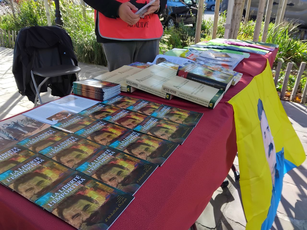 Gençlerin standında Önder APO’nun kitapları ve Demokratik, Ekolojik ve Kadın Özgürlükçü Paradigmaya dönük Fransızca kitapçıklar yer aldı. Çevrede bulunan halka, Önder APO’ya dönük tecrit ve İmralı soykırım sistemini teşhir eden bildiriler dağıtıldı.