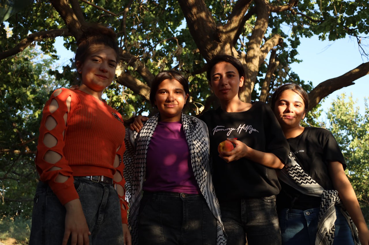 Genç kadınlar bu temelde moralli ve keyifli bir gün geçirdi. Birlikte şarkı söylediler, dans ettiler, yemek hazırladılar ve meyve topladılar.
