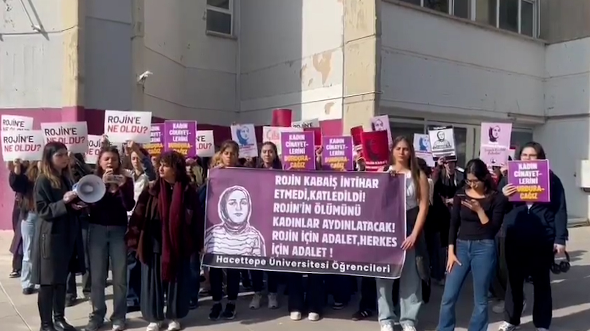 ANKARA – Hacettepe Üniversitesi öğrencileri, kaybolduktan sonra yaşamını yitirmiş şekilde bulunan Wan Yüzüncü Yıl Üniversitesi öğrencisi Rojin Kabaiş’in ölümüne dair kampüs içerisinde bulunan Mor Duvar önünde yürüyüş düzenledi. Öğrenciler yürüyüş boyunca “Bijî berxwedana jinan”, “ATK koruma DNA’yı açıkla” ve “Jin jiyan azadî” sloganları attı. Açıklamada Rojin Kabaiş’i fotoğrafı ile “Çi hat serê Rojîn Kabaişê”, “Kadın cinayetlerini durduracağız” dövizleri taşındı.