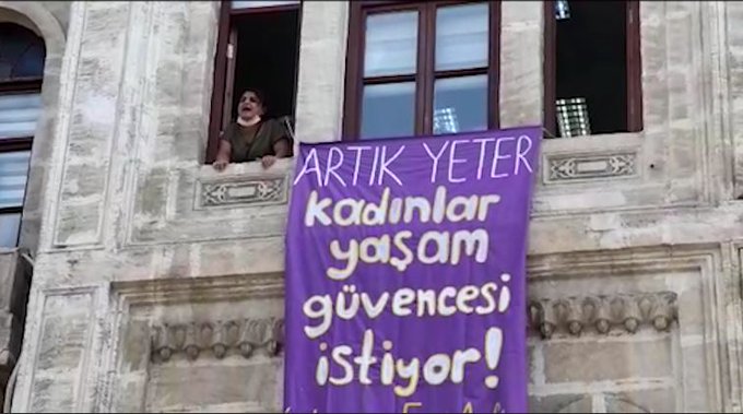 Son olarak faşist şef Erdoğan ve Numan Kurtulmuş’un hedefe aldığı ve İstanbul Sözleşmesi’nin kaldırılmasını gündeme getiren son tartışmalara tepki gösteren 7 kadın İstanbul ‘daki erk zihniyetli Aile, Çalışma ve Sosyal Hizmetler İl Müdürlüğü’nü binasına pankart astı. Bina penceresinden konuşma yapan bir kadın “Kazanılmış haklarımızdan vazgeçmeye hiç niyetimiz yok. İstanbul Sözleşmesi yürürlükten kalkmayacak. Kadınlar, erkek şiddeti ile yaşamaya mahkum ediliyor. Aile ve Sosyal Politikalar Bakanlığı neyi bekliyor? Sosyal medyada ismimizin gündeme düşmesini mi bekliyor?” dedi. Binaya giren faşist polisler 7 kadını rehin aldı.