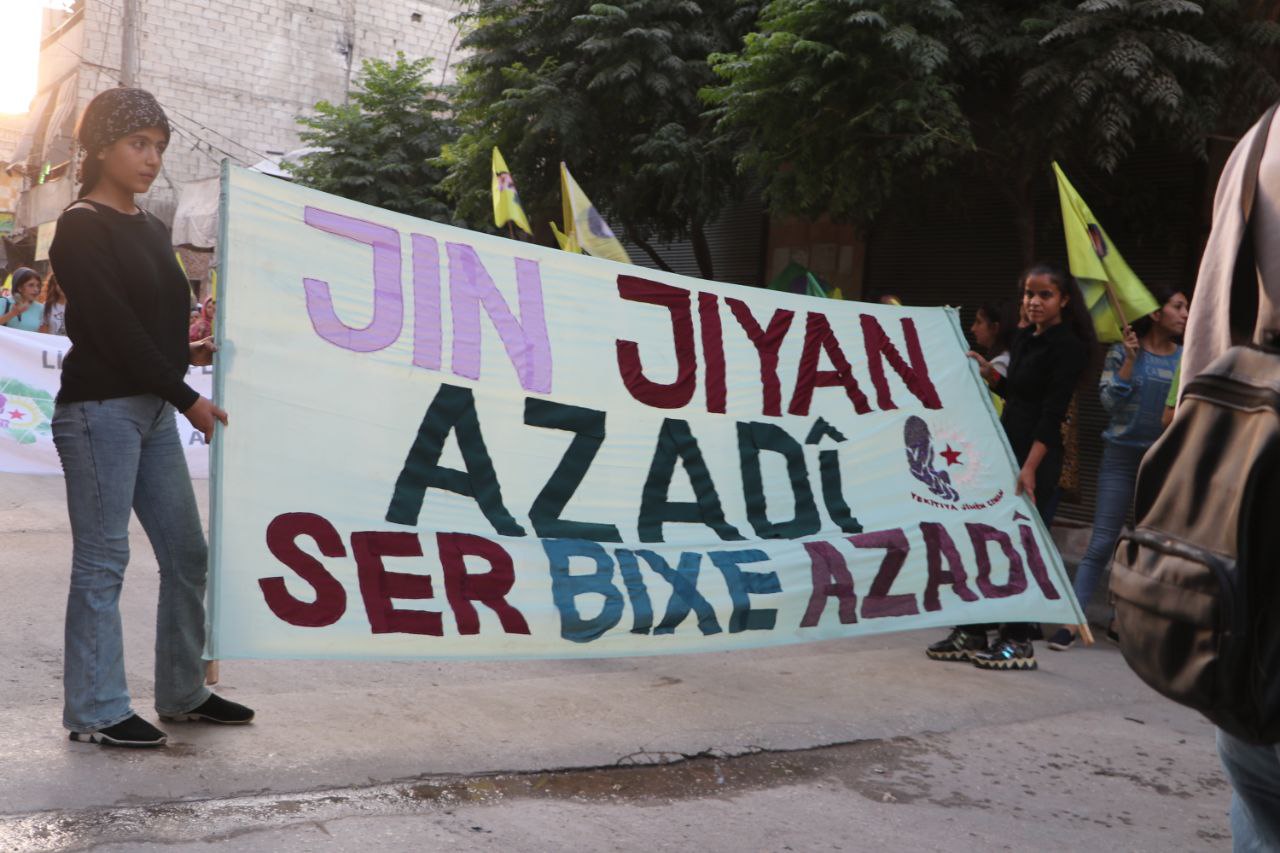 HALEP – Halep Genç Kadınlar Birliği bugün “Güneşimizi Karartamazsınız” şiarıyla yürüyüş düzenledi. Yürüyüş, Kabu Yasin’de mitinge dönüştü ve yapılan bir basın açıklamasıyla sona erdi.