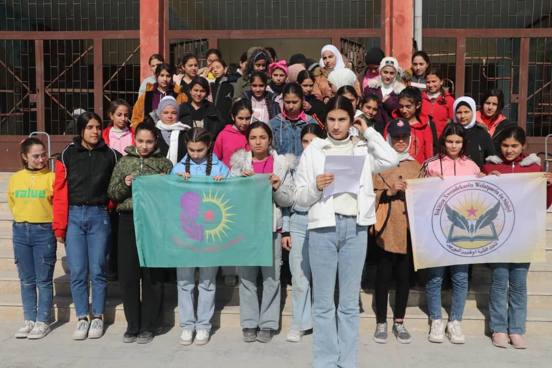Dinletinin ardından Yekîtîya Xwendekarên Welatparêz ên Surîye üyeleri tarafından gerçekleştirilen basın açıklamasında dünyadaki sömürü düzeninin yıkılmasına ve tüm halkların bu sömürü düzeninden kurtuluşuna öncülük eden Önder Apo’nun İmralı işkence sisteminde tutulmasının bir insanlık suçu olduğu vurgulandı. Açıklamanın devamında şartsız ve koşulsuz olarak Halkların Önderinin bir an önce fiziki özgürlüğünün sağlanması gerektiği; toplumun gelecek nesli olarak üzerlerine düşen her tür sorumluluğu büyük bir yurtseverlik anlayışıyla yerine getirecekleri ve Önderliksiz bir yaşamı asla kabul etmedikleri belirtildi.
