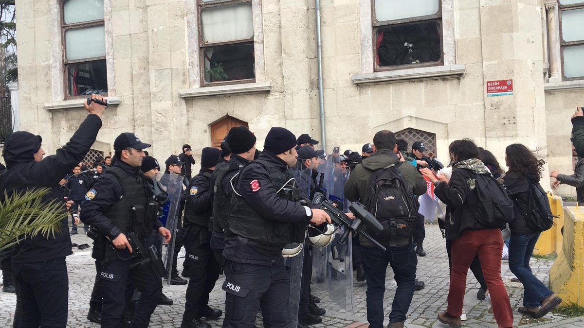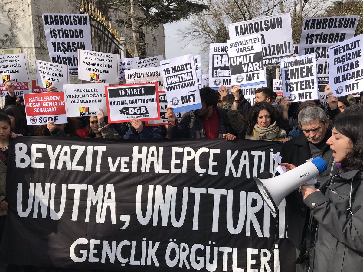 İSTANBUL – 16 Mart 1978 yılında İstanbul Üniversitesi Eczacılık Fakültesi önünde 7 öğrencinin katledildiği Beyazıt Katliamı ile 16 Mart 1988’de gerçekleşen Halepçe Katliamını protesto etmek isteyen öğrencilere işgalci Türk polisleri saldırdı.