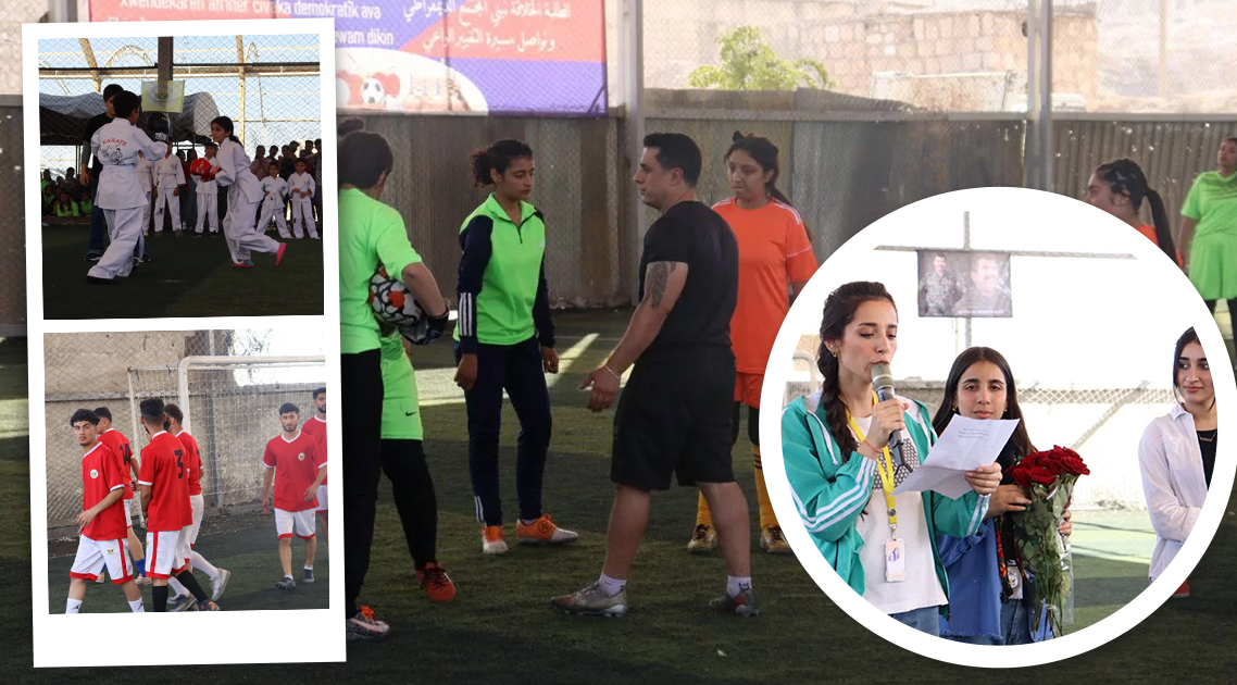 HALEP – 4. Şehit Hogir Kültür, Sanat ve Spor Festivali, Halep’in Şêxmeqsûd ve Eşrefiye mahallesinde “Spor sahalarından bilim ve sanat alanlarına. Yaratıcı öğrencilerin ruhuyla demokratik bir toplum inşa edin” sloganıyla başladı. Festival programı yarın sanat ve kültür etkinlikleriyle devam edecek.