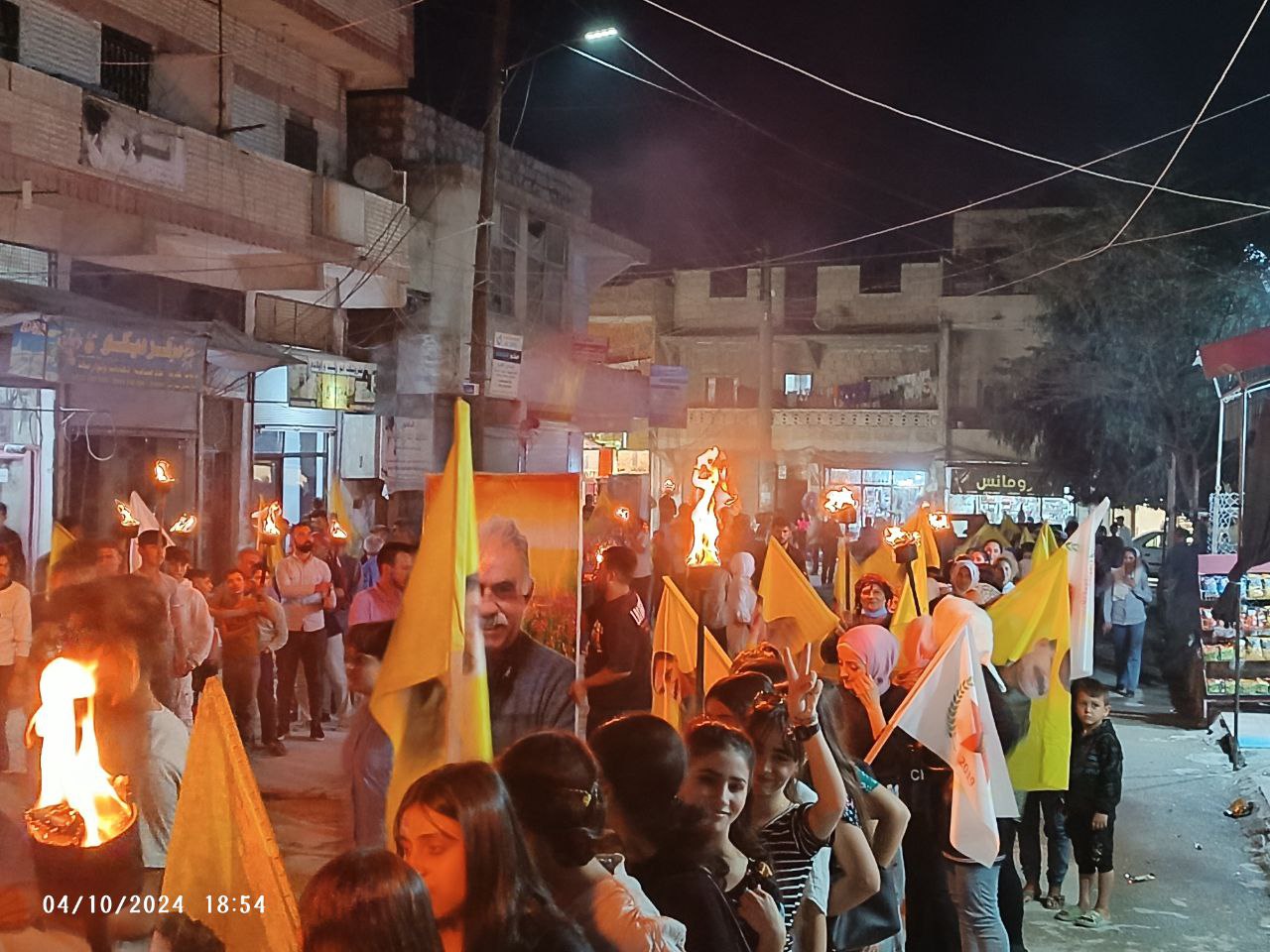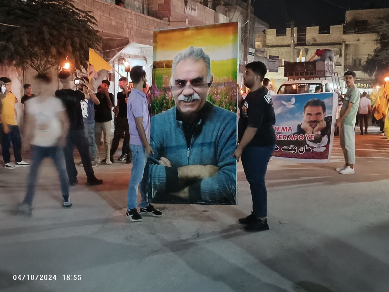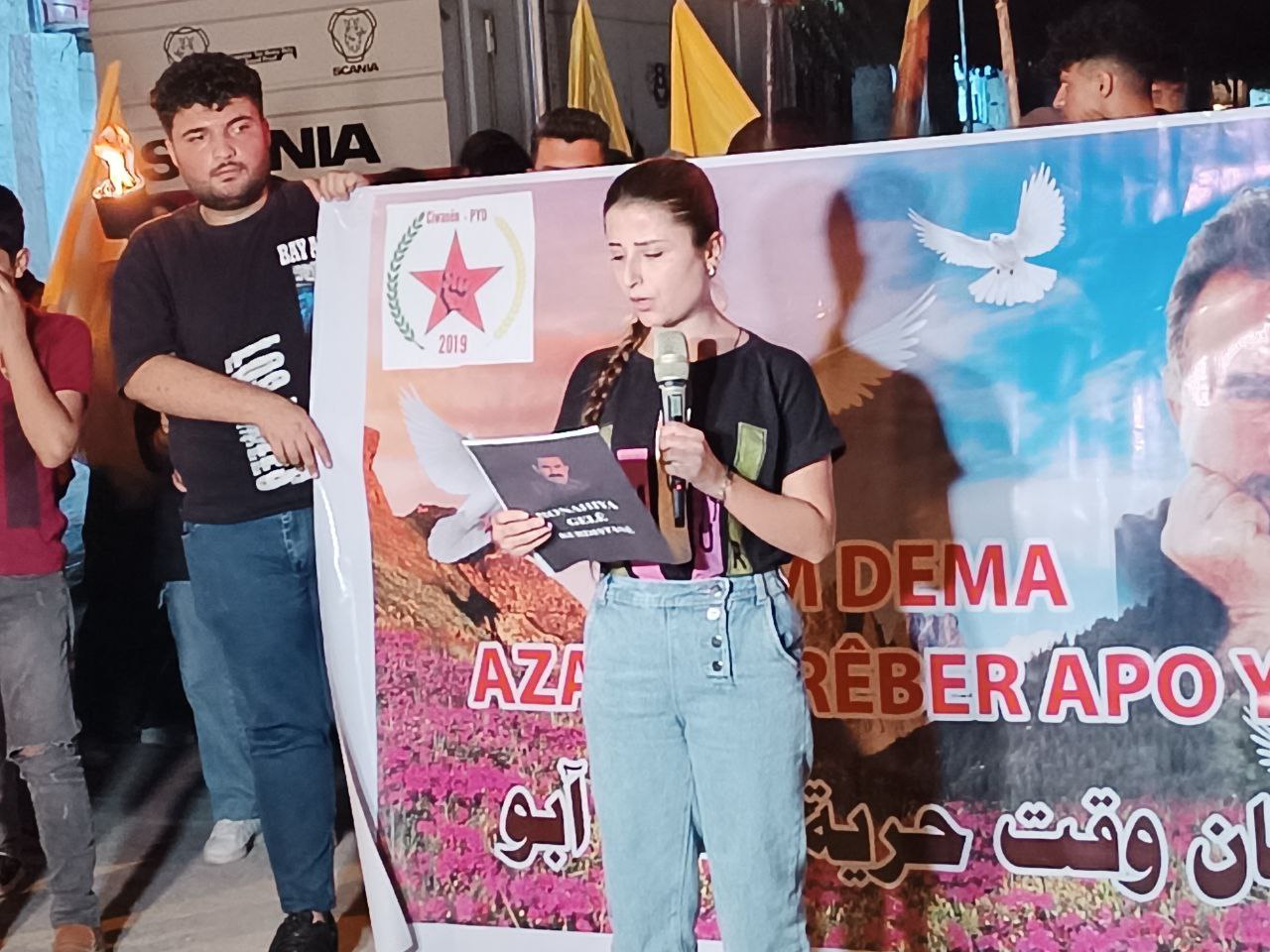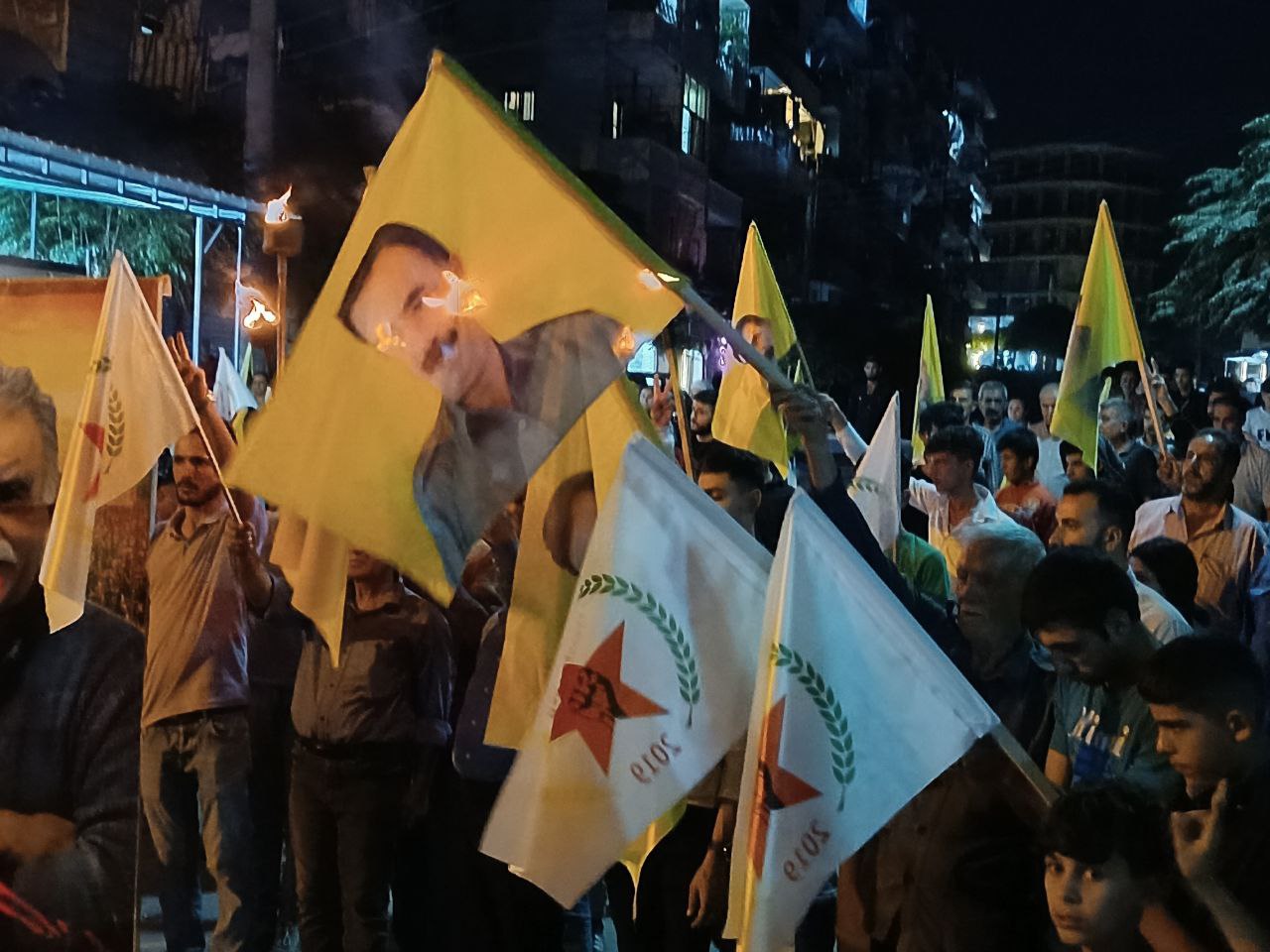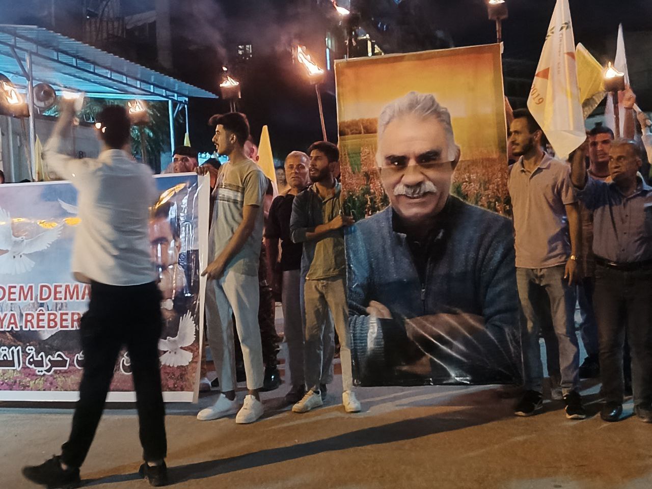 Yüzlerce genç ellerinde Önder APO’nun filemaları ve meşalelerle hep bri ağızdan “Bijî Serok APO” sloganıyla yürüdü.