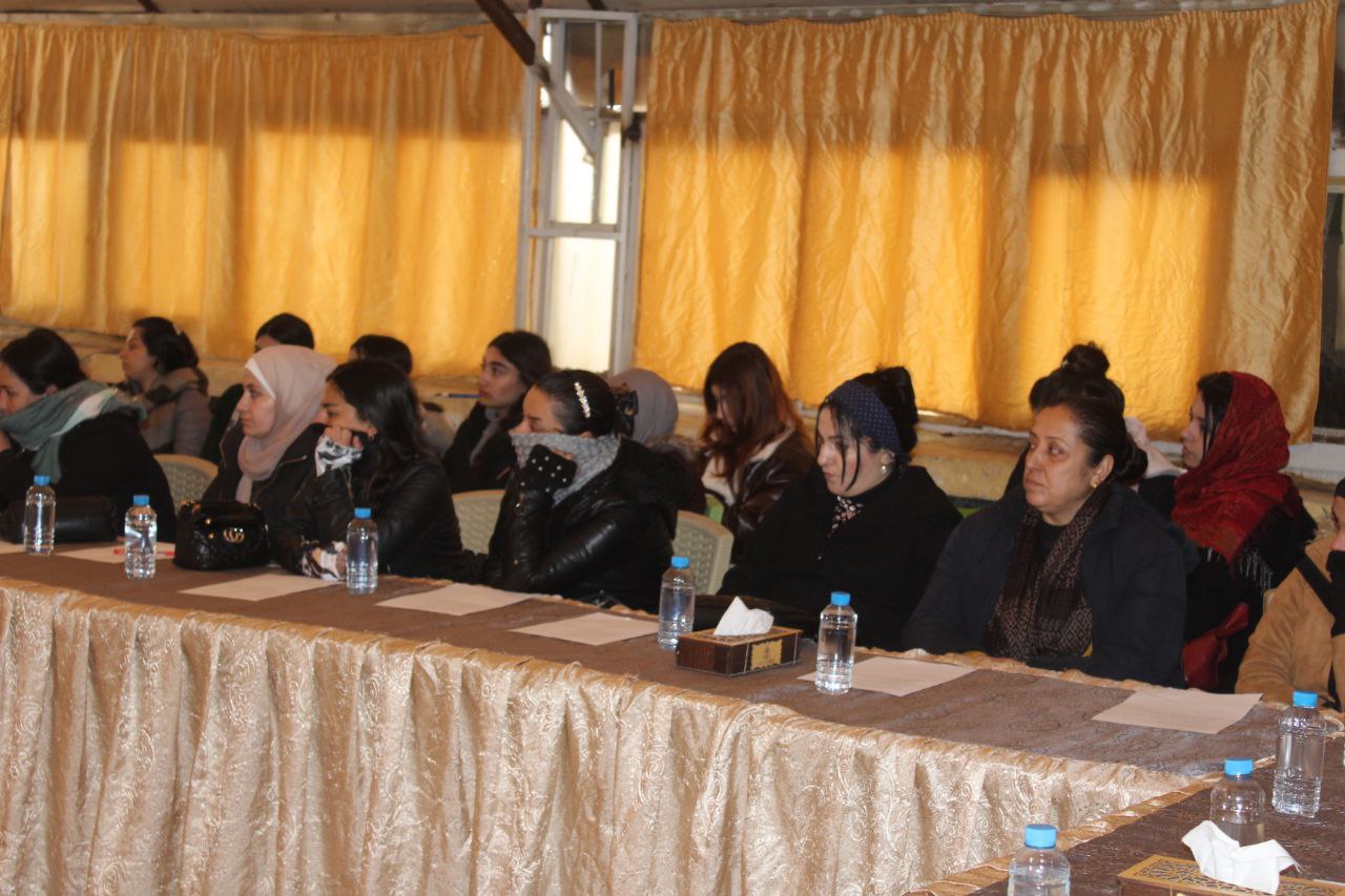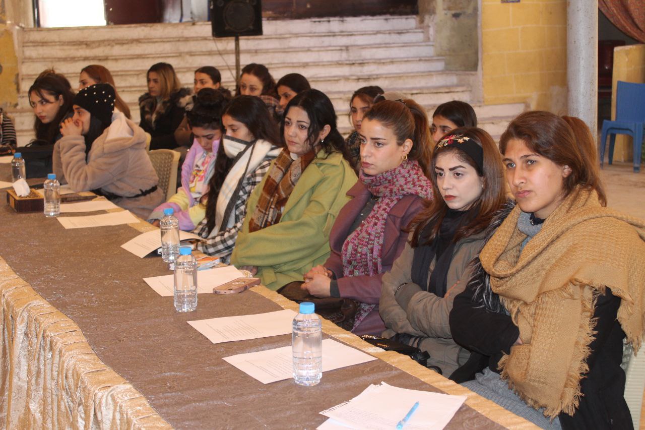 HALEP- Halep Genç Kadınlar Birliği, “Genç kadınların örgütlenmesiyle komployu yenecek, Önder Apo’nun fiziki özgürlüğünü sağlayacağız” sloganıyla Şêxmeqsûd Mahallesi’ndeki Heleb Telêt Salonu’nda, sivil kurumların üyeleri, Genç Kadınlar Birliği, kadın örgüt ve hareketlerinin katılımıyla bir panel düzenledi.