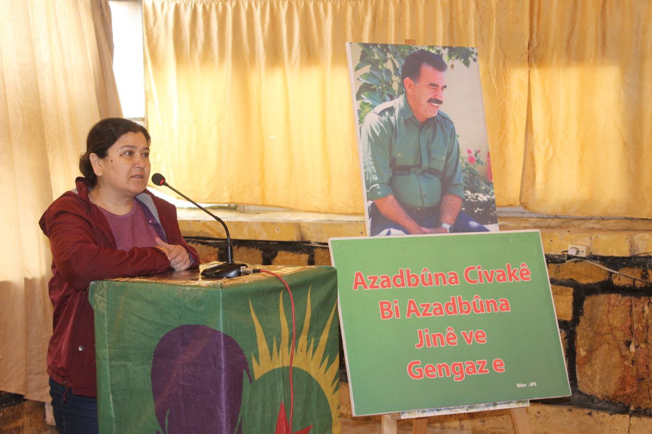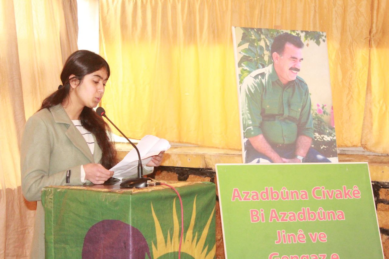 Sinevizyondan sonra katılımcılar, komplonun genç kadınlar üzerine etkileri üzerine konuştu. Şehit Şêlan Meclisi üyesi Seher Şewa, “Önderliğin fikirleri kadınların serhildana kalkmasını ve ilerlemesini sağladı. Bununla kadınlar özgür iradeleri ve güçlerine olan inançlarıyla yaşamın her alanına katıldılar” dedi.