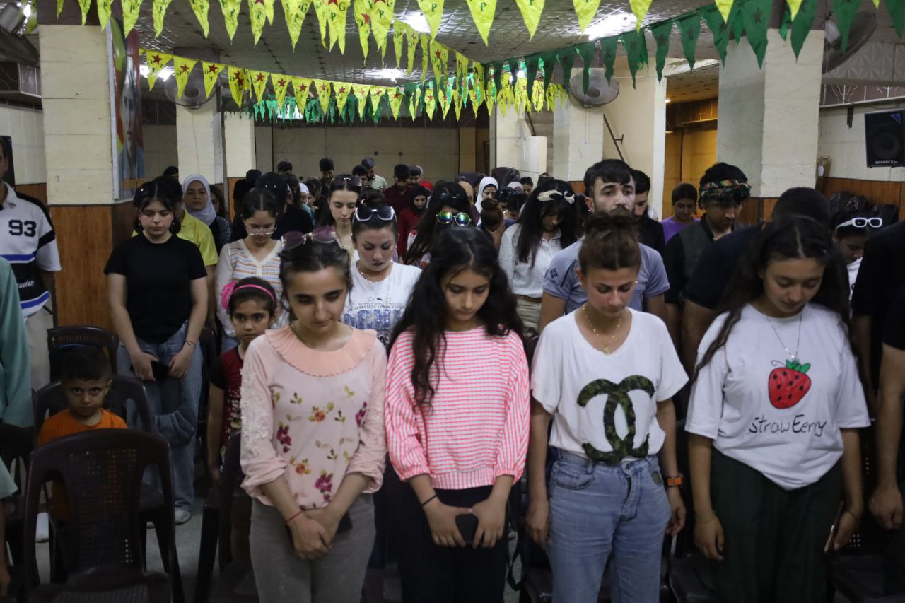HALEP-   Devrimci Gençlik Hareketi ve Genç Kadınlar Birliği, 19 Temmuz Rojava Devrimi’nin yıl dönümünün yaklaşması dolayısıyla bir anma etkinliği düzenledi. Etkinlik, Rojava Devrimi’nin tüm şehitleri anısına yapılan bir dakikalık saygı duruşuyla başladı.