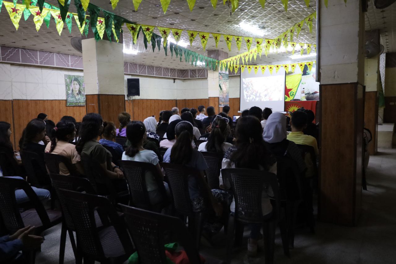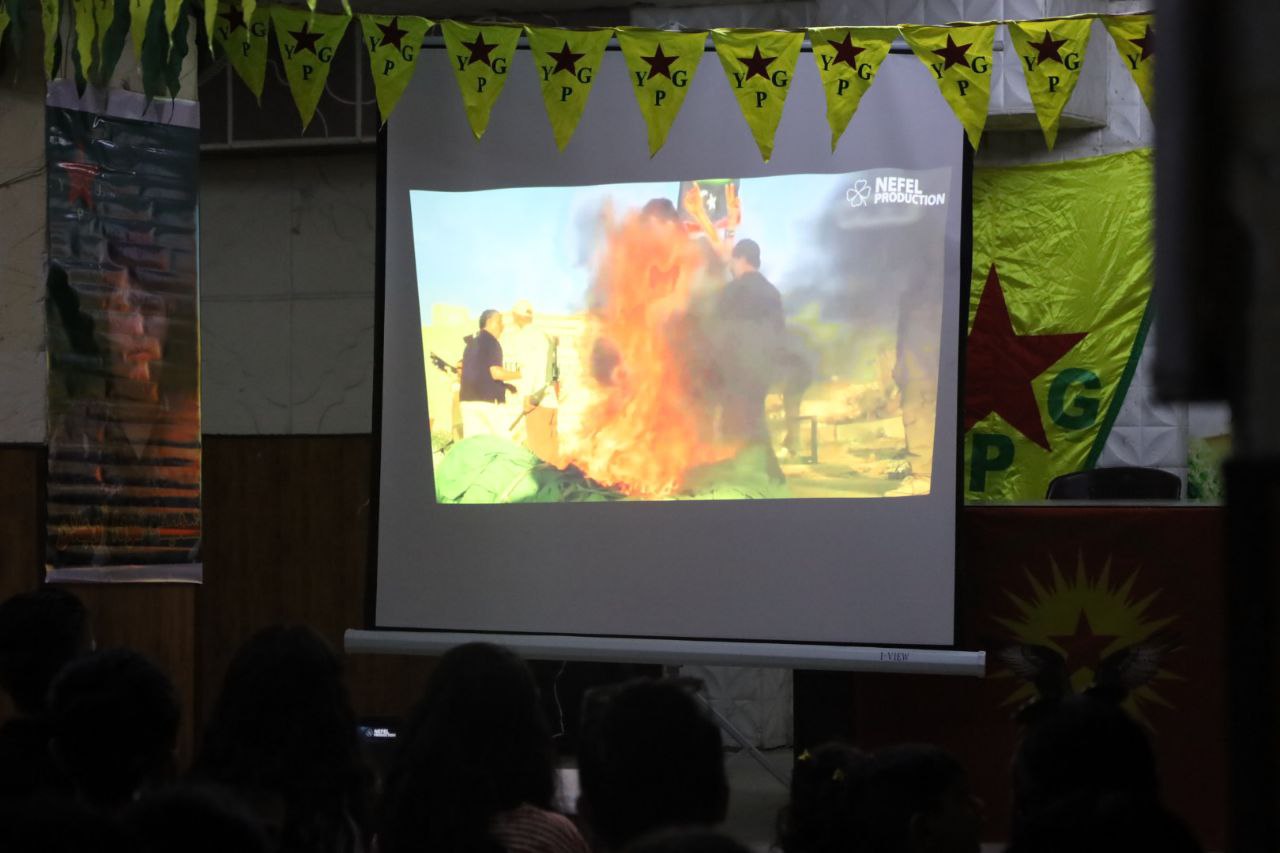 Anma etkinliği, Rojava Devrimi’nin tarihini ve kazanımlarını anlatan sinevizyon gösterimiyle devam etti. Gösterimde devrimin başlangıç süreci, halk meclislerinin kuruluşu, kadınların öncülüğü ve şehitlerin fedakârlıkları vurgulandı.