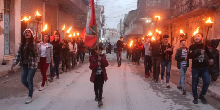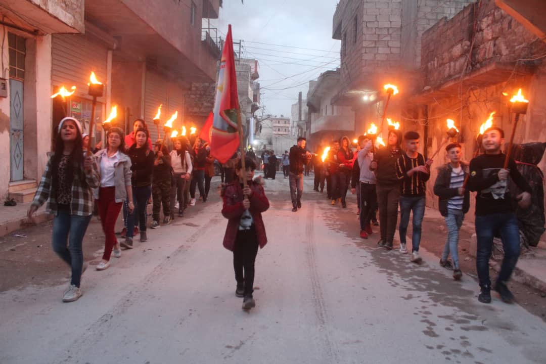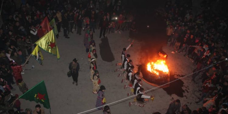 HALEP – Halep’in Şêxmeqsûd ve Eşrefiyê mahalllerinde yurttaşlar küçük gruplar halinde Devrimci Gençlik Örgütü öncülüğünde Newroz ateşini yaktı.