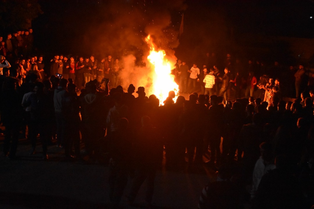 Ateşler yakıp devrim şarkıları eşliğinde slogan atan gençler gecenin geç saatlerine kadar kutlamalarını sürdürdü.