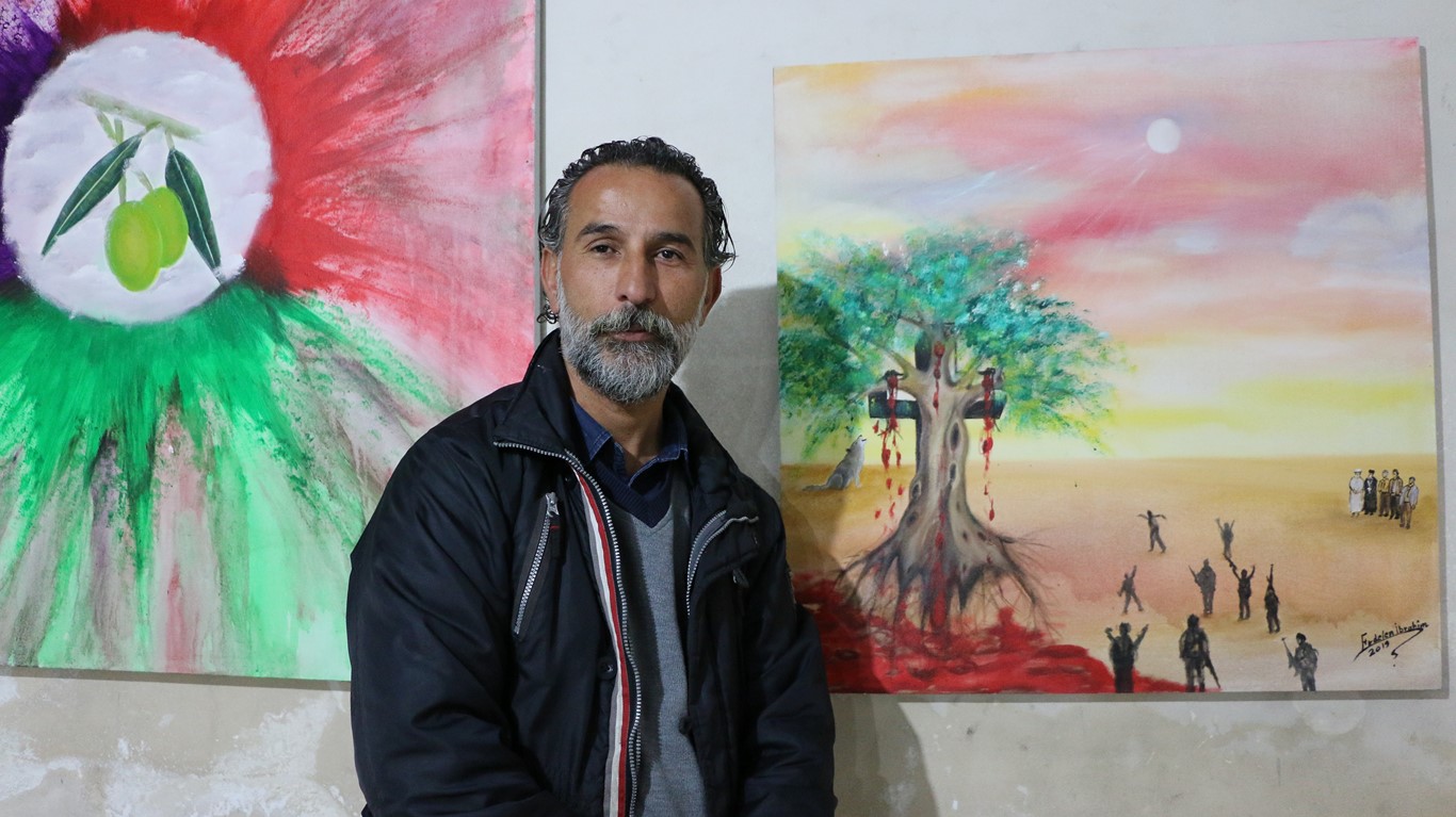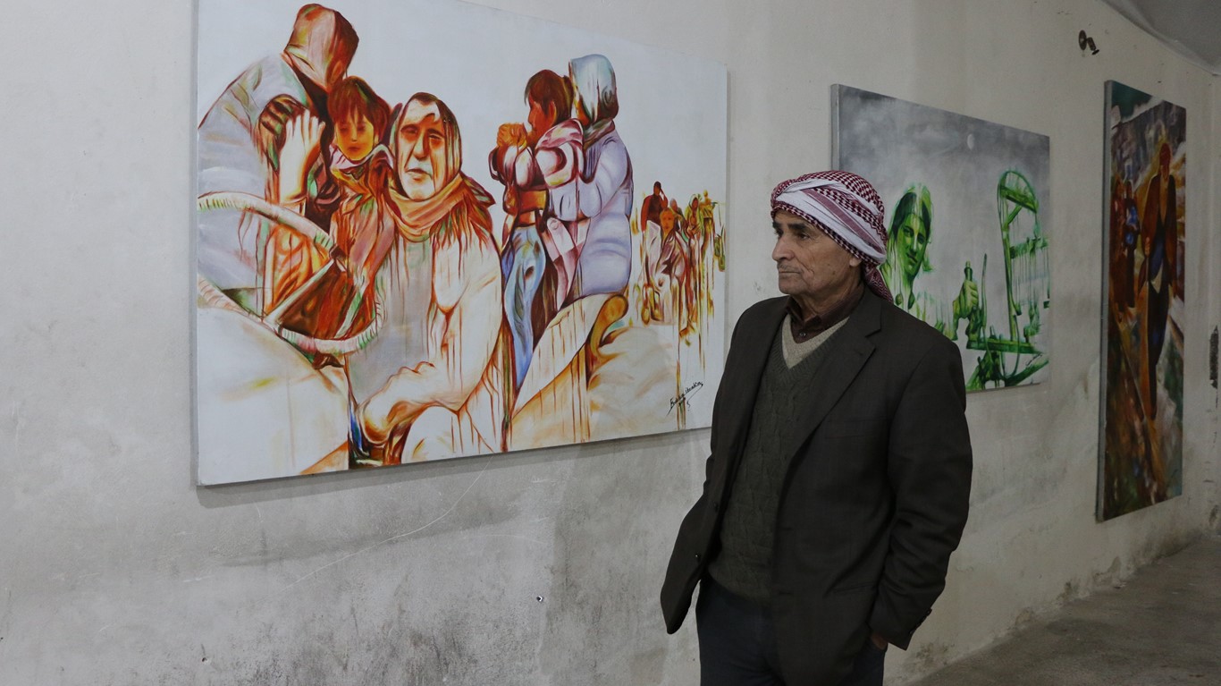 Halep’in Şêxmeqsûd mahallesinde sanatçılar, Efrîn’e işgal saldırılarını ve Çağın Direnişi’ni anlatan tabloların yer aldığı bir sergi açtı.