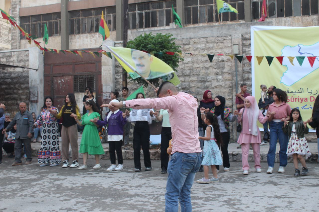 HALEP- Halep’te Devrimci Gençlik Hareketi ve Genç Kadınlar Birliği öncülüğünde yüzlerce kişi, Tişrîn Direnişi zaferini Eşrefiye mahallesinde gerçekleştirilen bir etkinlikle kutladı. Etkinlikte Önder APO’nun posterlerinin yanı sıra QSD, YPG ve YPJ bayrakları yer aldı.