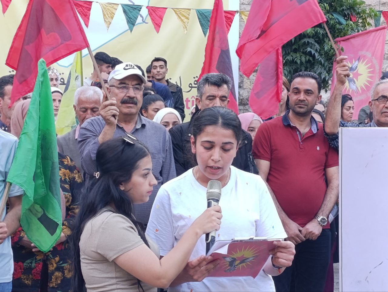 Kutlama başlamadan önce başta Tişrîn şehitleir olmak üzere Rojava ve Kürdistan şehitleri için bir dakikalık saygı duruşunda bulunuldu. Ardından Devrimci Gençlik Hareketi adına Zeyneb Abdo yazılı bir açıklama okudu.