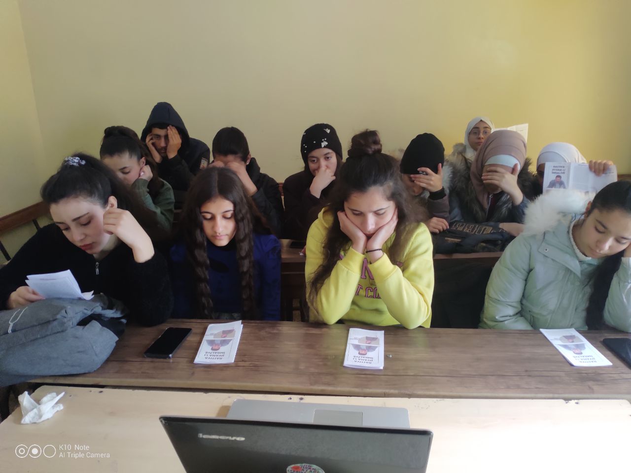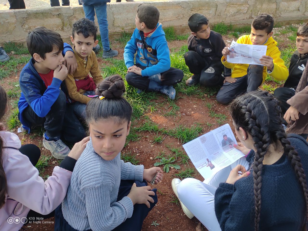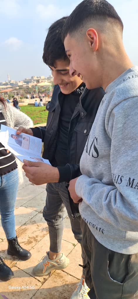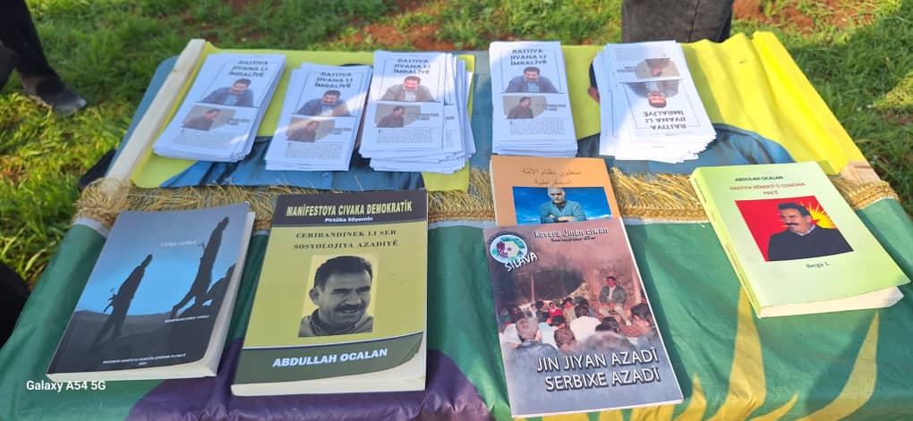 HALEP- Yekitiya jinên Ciwan öncülüğünde Halep okullarında genç kadınlara Arapça ve Kürtçe dilleriyle komplo sürecini ve gerçekliğini anlatan broşürler dağıtıldı. Daha sonra genç kadınlar tarafından Önder Apo’nun kitaplarından oluşan stand açıldı ve yoldan geçen genç kadınlara broşürler dağıtıldı. Genç kadınlar çocukların da bilinçlenmesine ve komployu tanımalarına önem verdiklerinden stant çevresinde çocukları bir araya toplayarak broşürde komplo gerçekliğine dair yazılan yazıyı okudular.