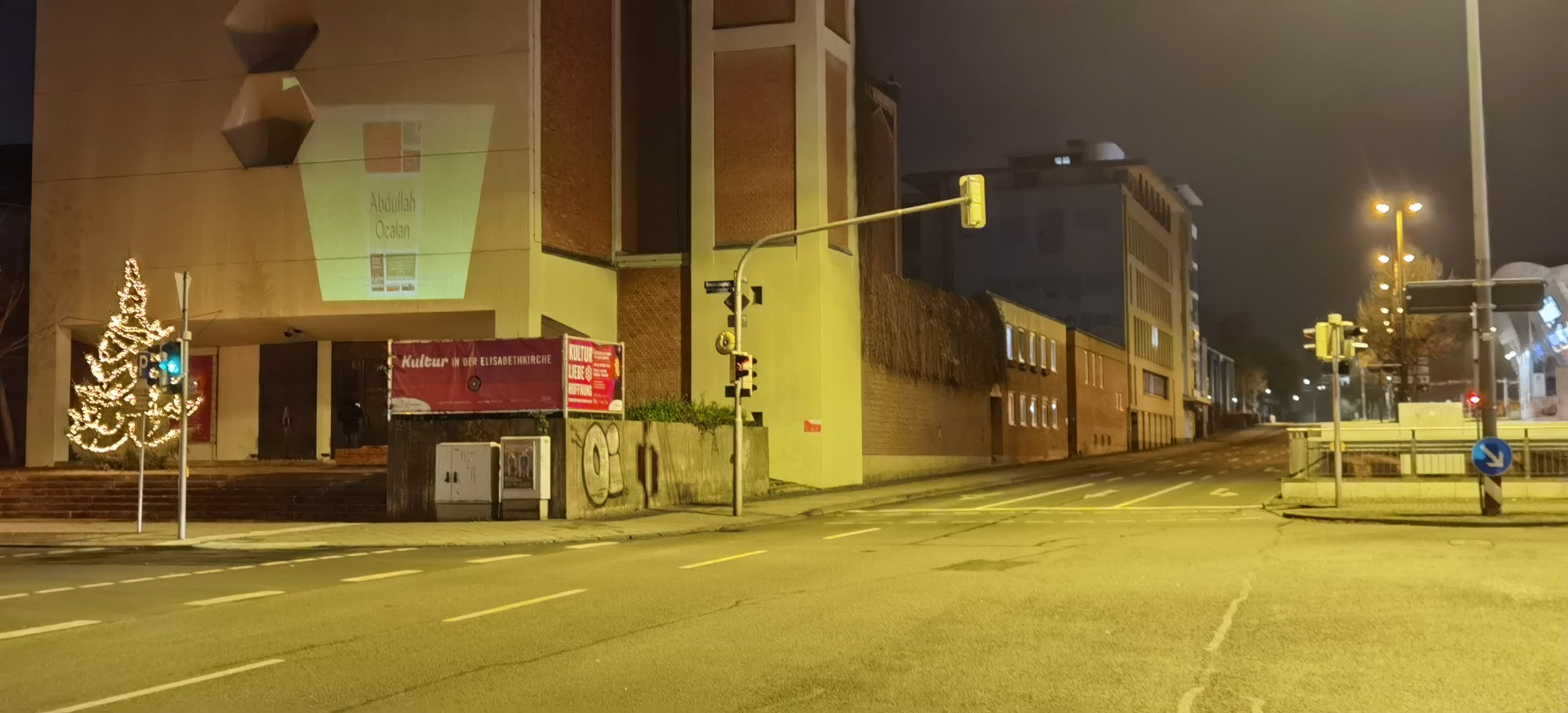 “Tecride, Faşizme, İşgale Son – Bi Hev Re Serhildan” hamlesi kapsamında düzenlenen eylemde, dün gece şehir meydanı ve giriş çıkışlarında projeksiyon cihazı ile duvarlara Önder Öcalan’ın görüntüleri ve çeşitli konulardaki değerlendirmeleri yansıtıldı.