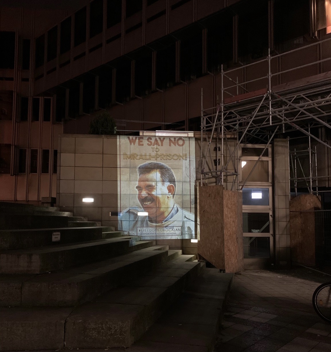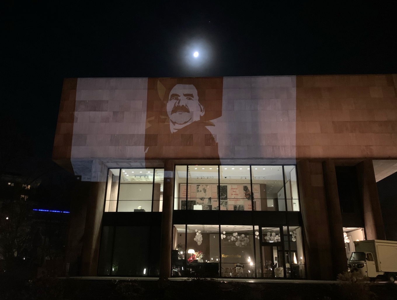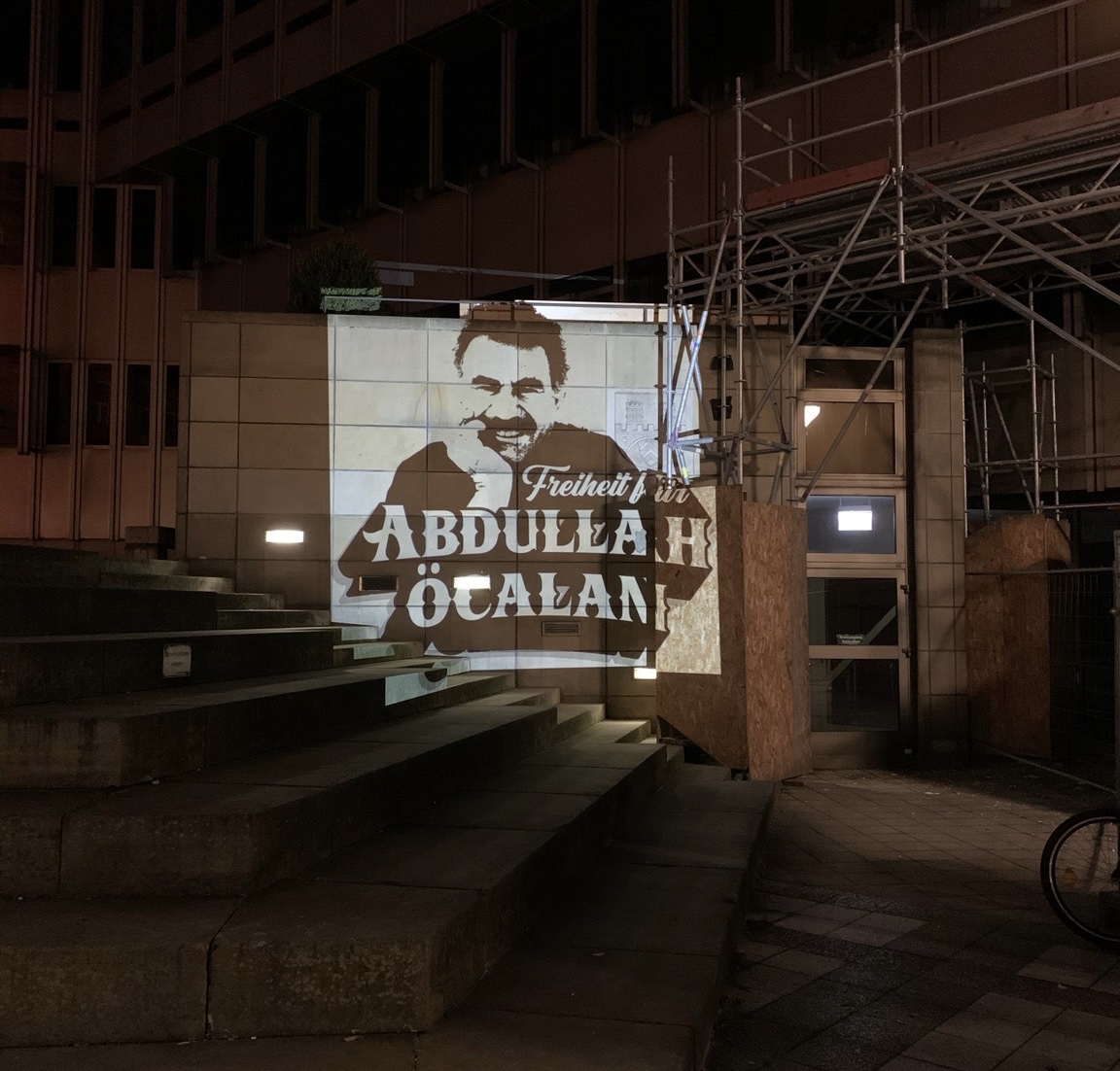 Almanya’nın Bielefeld kentinde Çarşamba günü akşam saatlerinde şehrin birçok kamu ve turistik kurumlarına Önder Öcalan’ın fotoğrafları projeksiyon ile yansıtıldı. Bielefeld belediye binası, Bielefeld’in ünlü turistik yeri olan Sparrenburg, Kunsthalle Bielefeld, Kesselbrink ve Ravensberger Parkı’na fotoğrafları yansıtan gençler, çevredeki eyleme ilgi gösteren insanlara eylemlerinin amacıyla ilgili bilgi de verdiler.