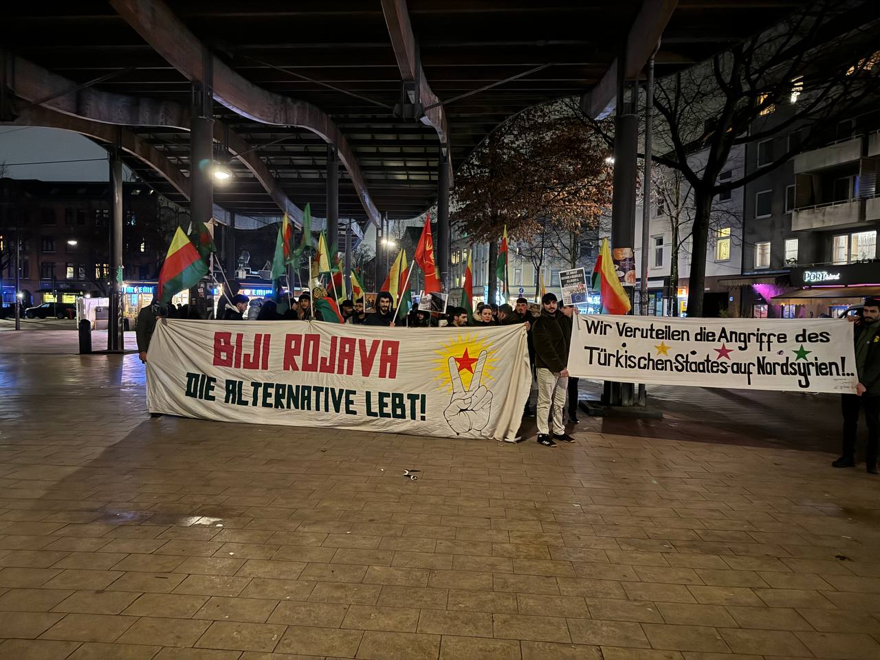 Eylemde sık sık ‘‘Bijî Serok APO’’, ‘‘Bijî Berxwedana Rojava’’, ‘‘Şehîd Namirin’’,‘‘Terörist Türkiye’’ sloganları atan gençler Hamburg tren garına yürüyerek, orada bir basın açıklaması gerçekleştirdi.