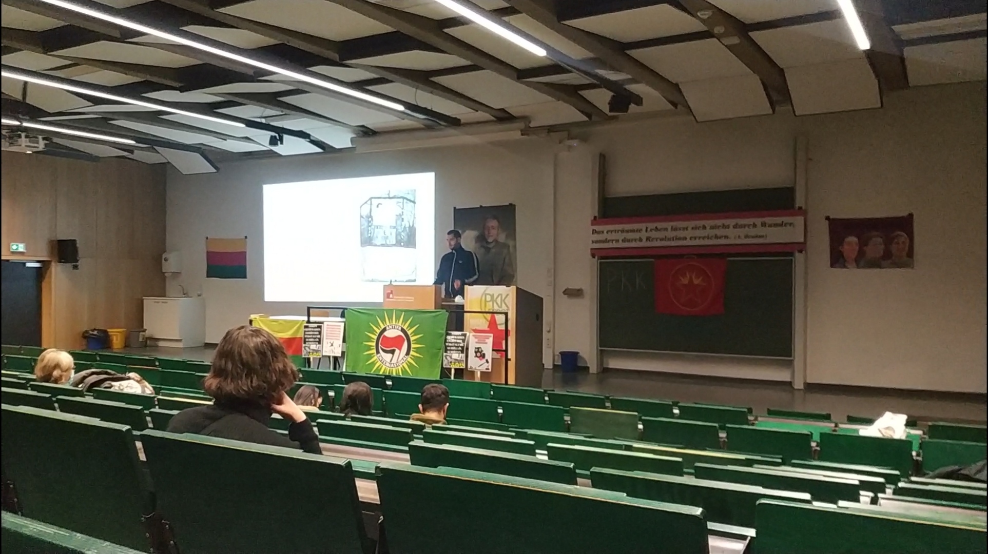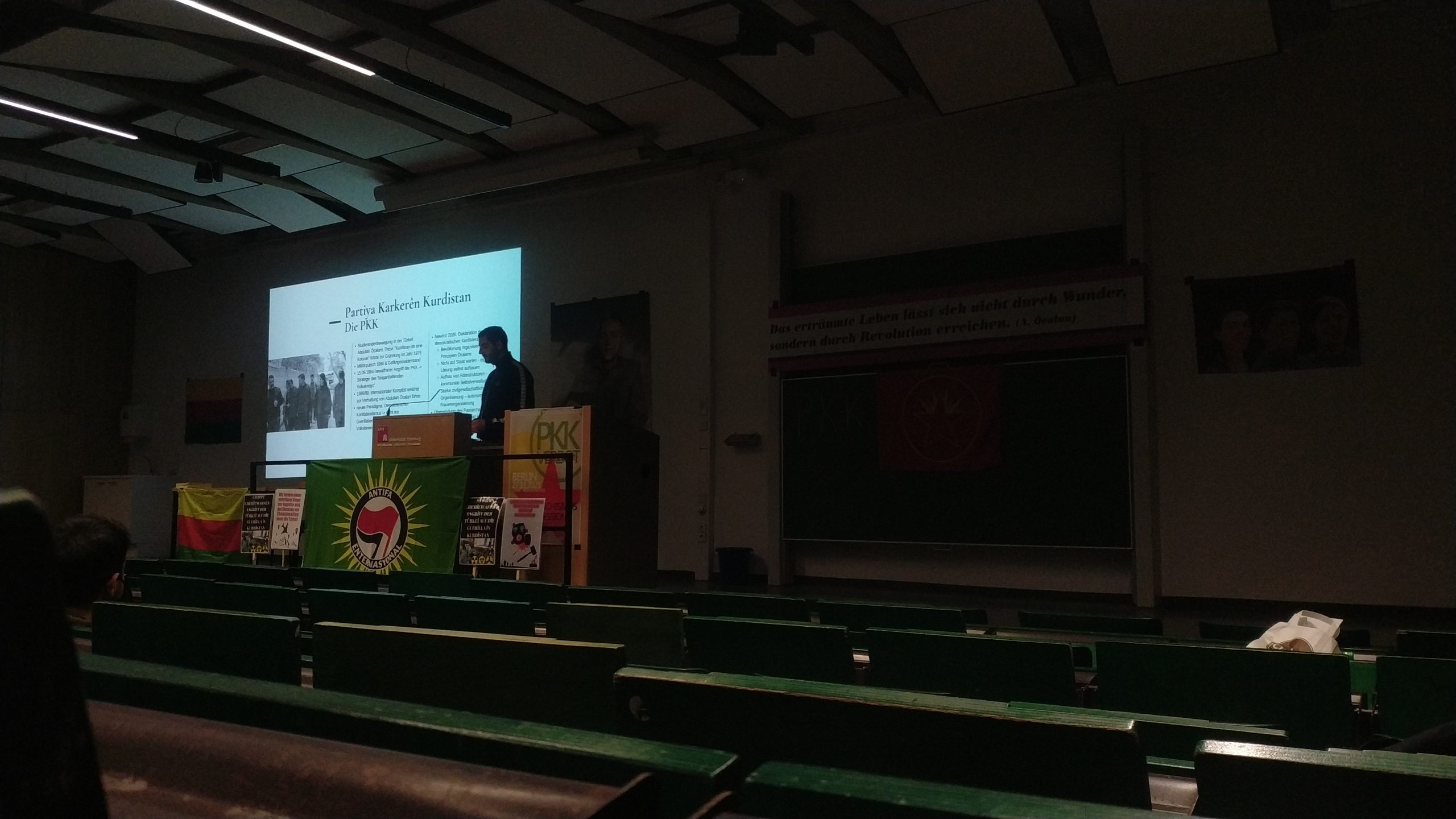 HAMBURG – Almanya devletinin 28 yıllık PKK yasağına karşı Hamburg Üniversitesi’nde TCŞ (Tevgera Ciwanên Şoreşger) ve enternasyonalist gençler öncülüğünde bir seminer verildi.