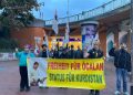 Karahan, “Bugün, Önder APO’nun uluslararası komplonun yıl dönümünde özgürlük isteyen Kürt gençleri olarak burada toplandık. 9 Ekim, yalnızca bir şahsın değil, tüm Kürt halkının iradesinin yok sayıldığı bir gündür. Bu tarih, halkların özgürlük mücadelesine karşı yürütülen sistematik bir saldırının başlangıcını işaret etmektedir” ifadelerini kullandı.