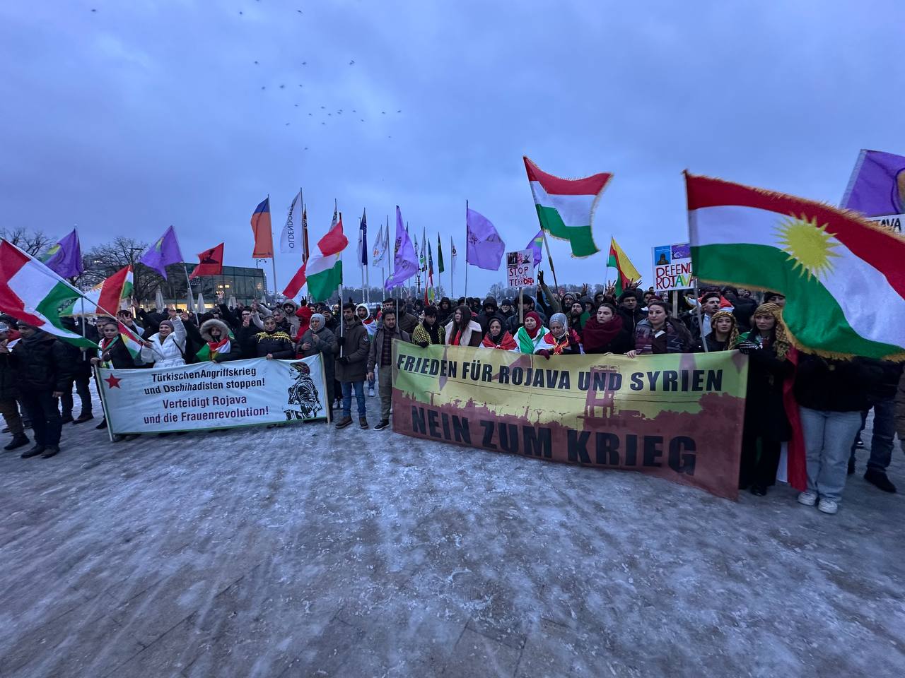 HAMBURG– DKHM (Demokratik Kürt Halk Meclisi) HTŞ ve Türk devletine bağlı çetelerin Rojava ve Kuzey Doğu Suriye’ye yönelik saldırılarını protesto etmek amacıyla görkemli bir yürüyüş düzenledi.