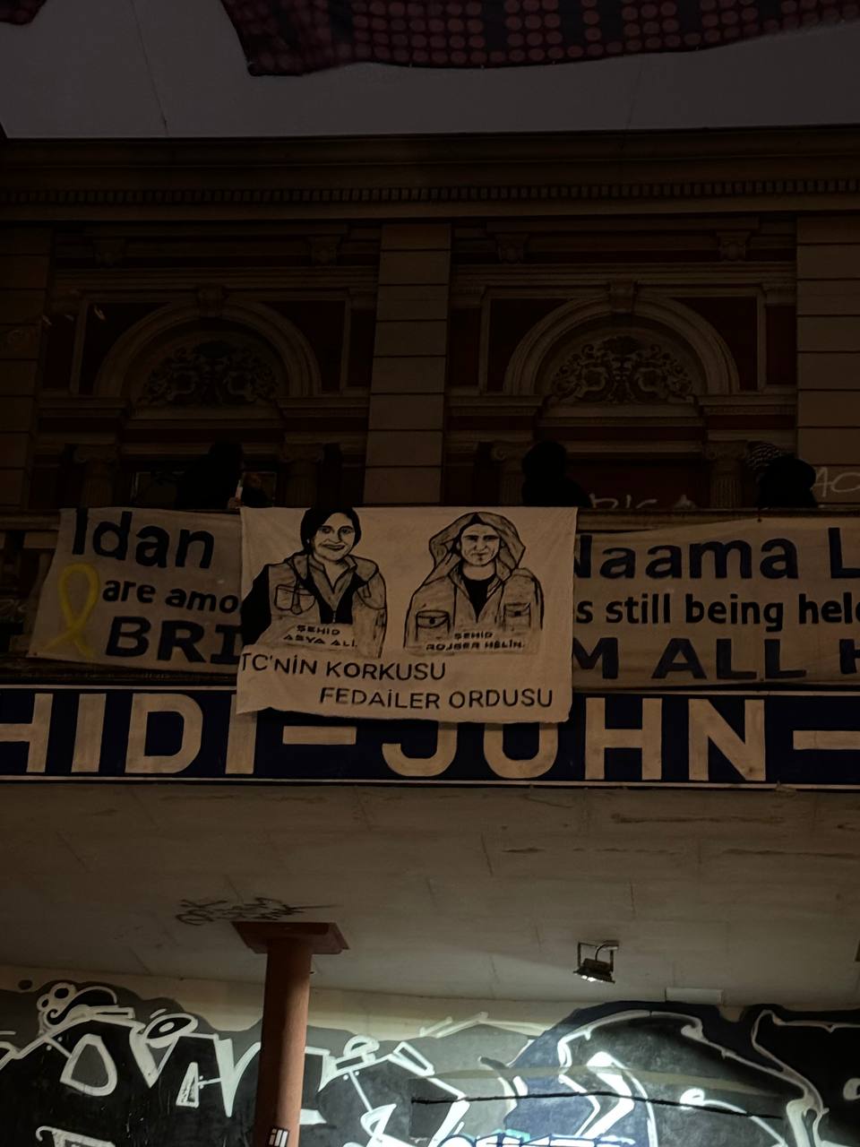HAMBURG – TCŞ üyesi gençler PKK’nin 46’ncı kuruluş yıl dönümü Almanya’nın Hamburg kentinde meşaleli yürüyüş ve etkinliklerle kutladı. Yürüyüş öncesi gençler, 23 Ekim tarihinde Ankara’da TUSAŞ’a yönelik fedai eylemi gerçekleştiren Şehit Asya Ali ve Rojger Hêlîn’in resimlerin olduğu ve “TC’nin Korkusu Fedailer Ordusu” yazılı pankart açtı.