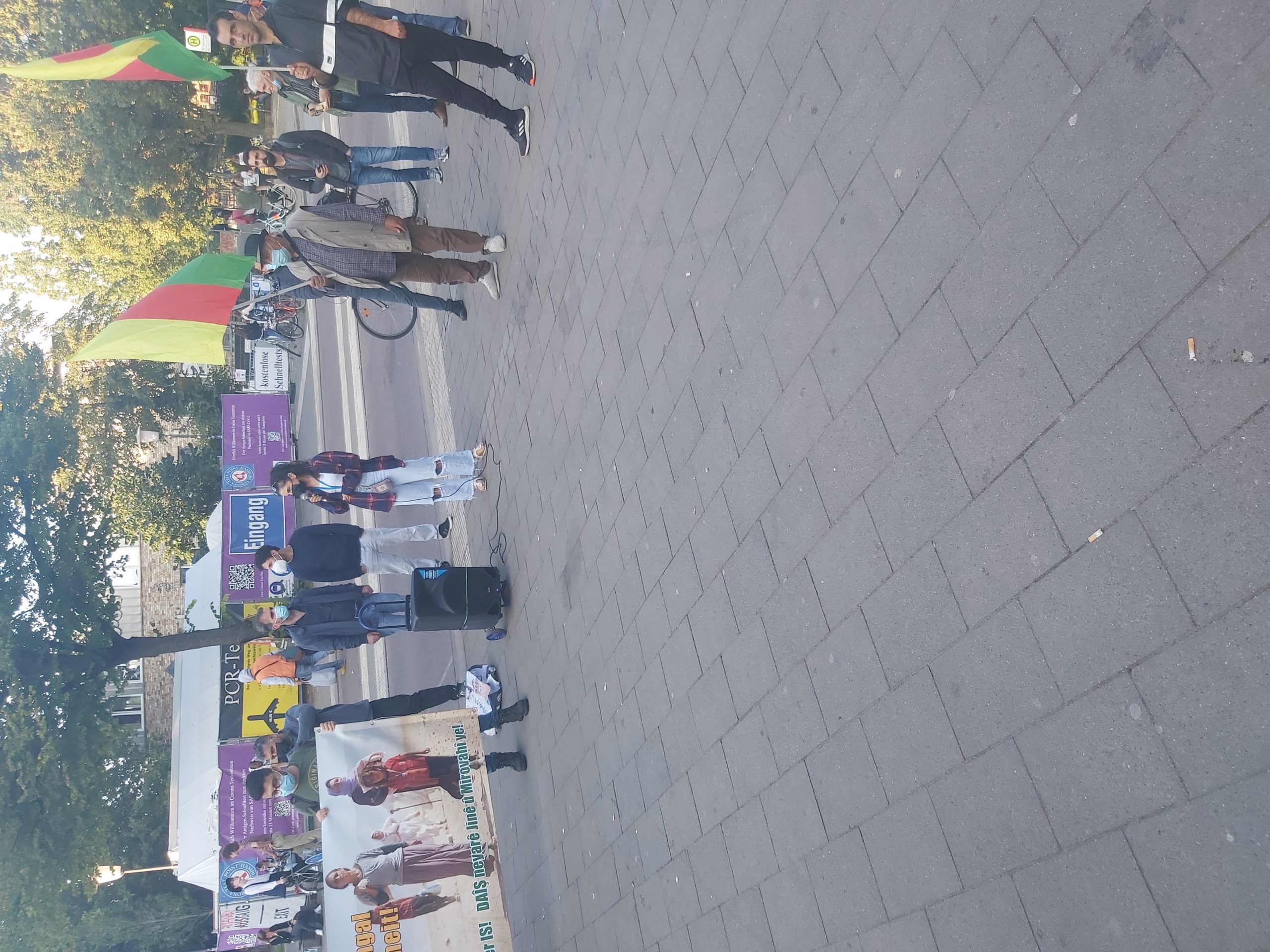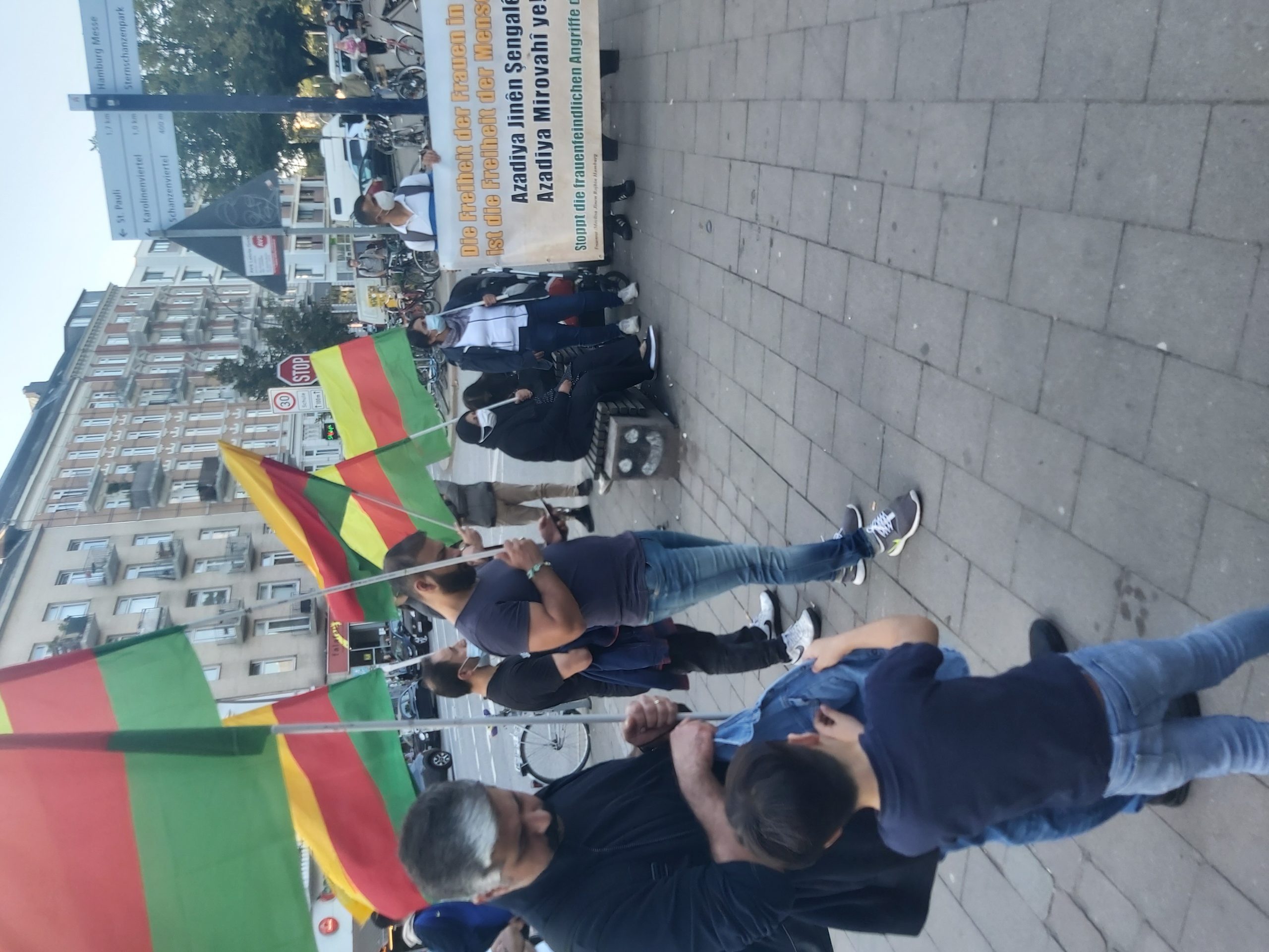HAMBURG – 18:00’da bir araya gelen kitle Kürdistan Devrim Şehitleri anısına bir dakikalık saygı duruşunun ardından eyleme başladı.
