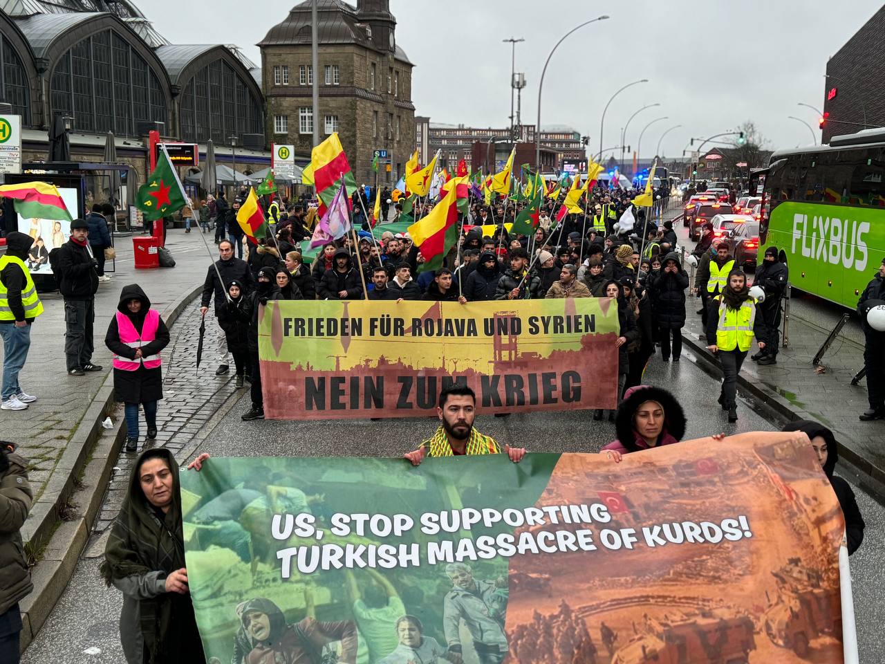 HAMBURG – Almanya’nın Hamburg kentinde, Tevgera Ciwanên Şoreşger (TCŞ) öncülüğünde ve Hamburg Halk Meclisi, Devrimci sol fraksiyonlar, Kürt halkı ve dostlarının katılımıyla, Rojava saldırılarına karşı görkemli yürüyüş düzenledi.