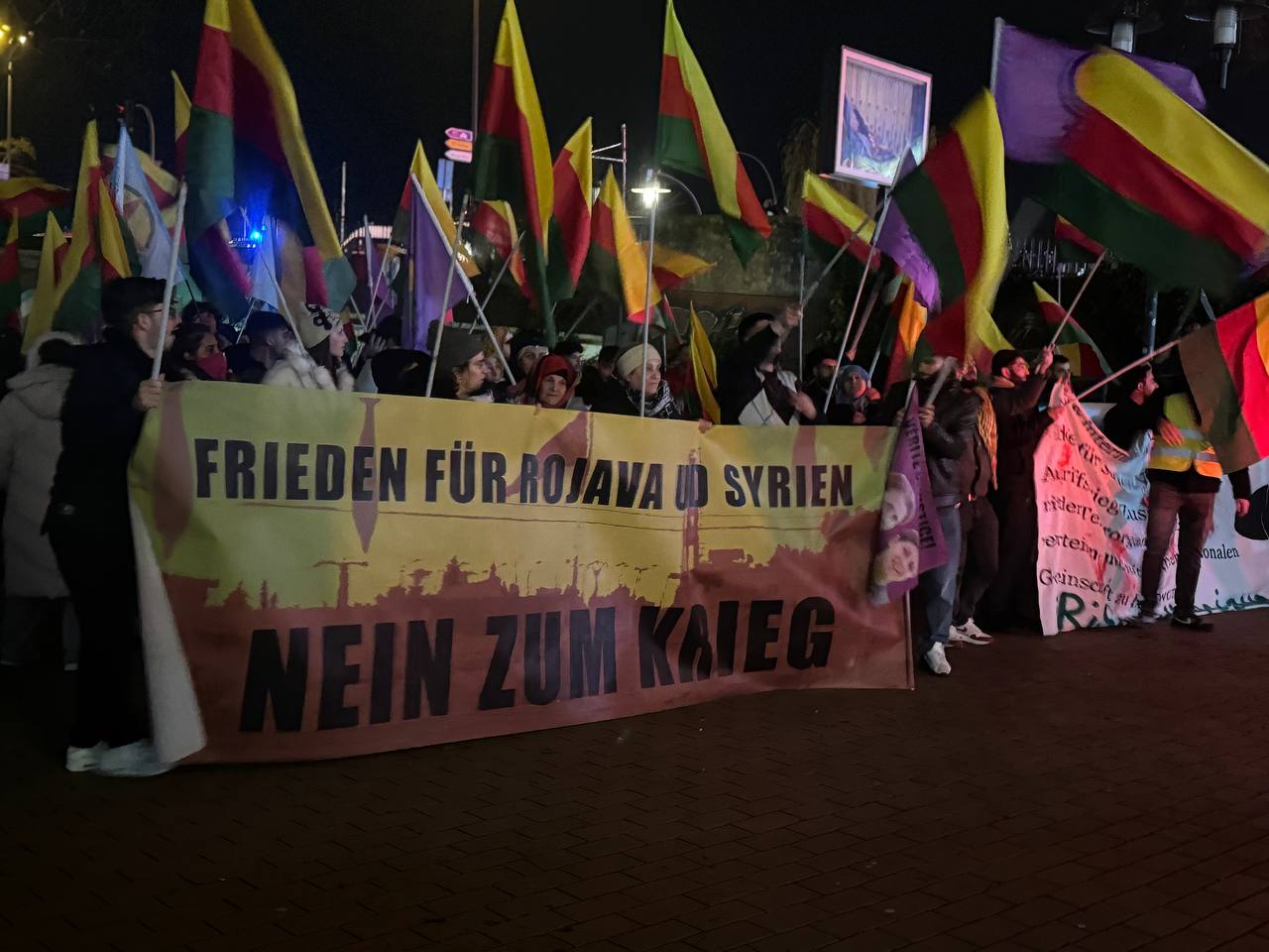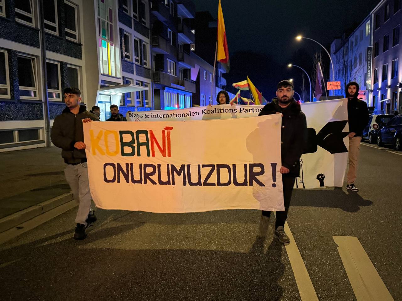 HAMBURG – Almanya’nın Hamburg şehrinin Harburg semtinde, TCŞ öncülüğünde Rojava’ya yönelik Türk devletinin saldırılarını protesto etmek amacıyla yürüyüş düzenlendi. Etkinlik, devrim şehitleri adına yapılan bir dakikalık saygı duruşuyla başladı ve “Şehîd Namirin” sloganlarıyla devam etti.