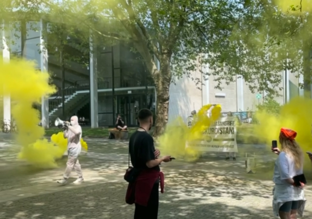 HAMBURG – “Antikapitalistisches Klimatreffen Hamburg” adında bir grup çevre aktivisti Hamburg üniversitesinde işgalci Türk devletinin Güney Kürdistan saldırılarına karşı eylem yaptı.