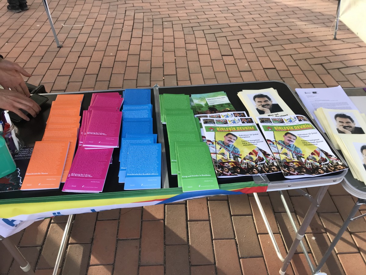 Gençlerin açtığı stantta Halklar Önderi Abdullah Öcalan’ın çeşitli yazıları ve kim olduğu, Kürt nüfusu içindeki rolü ve 23 yıl önce uğradığı uluslararası komploya ilişkin bilgiler içeren broşürler dağıtıldı.