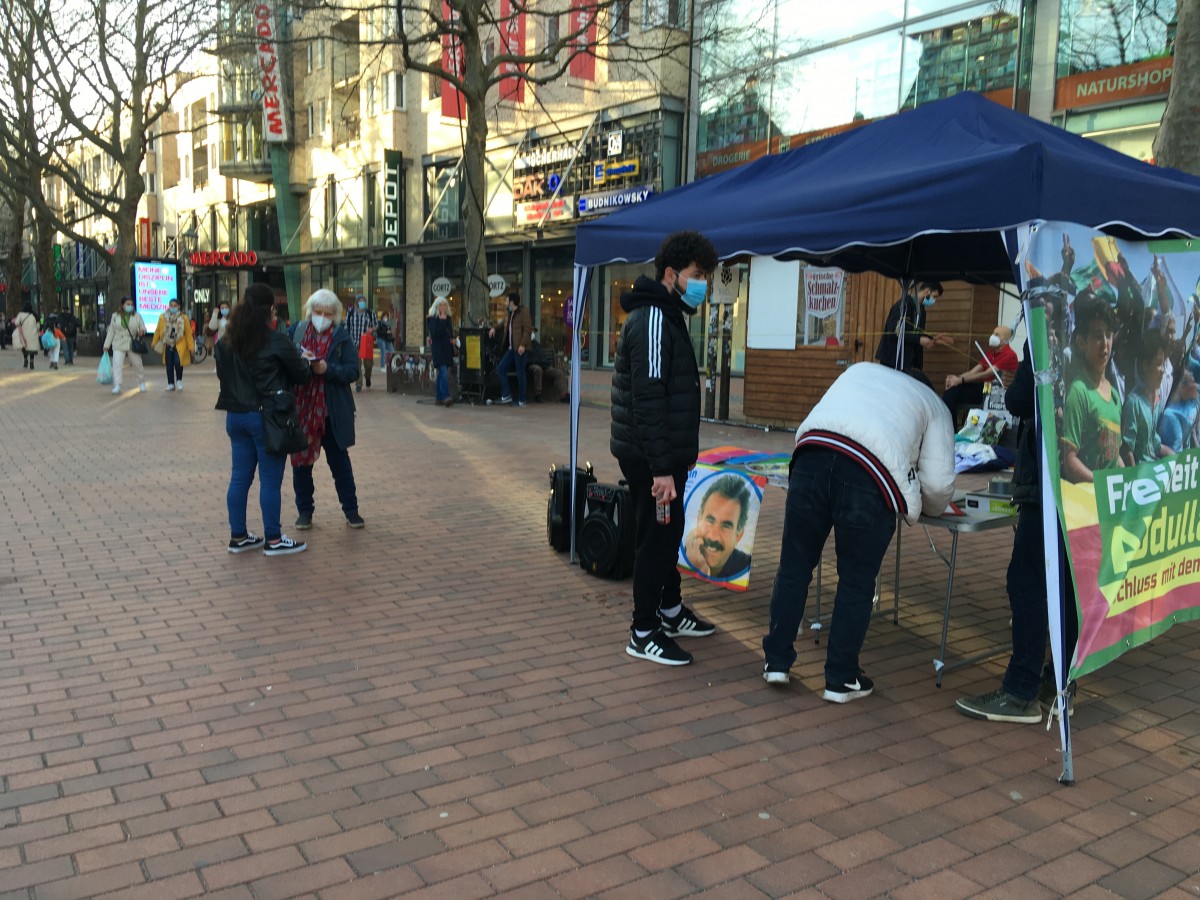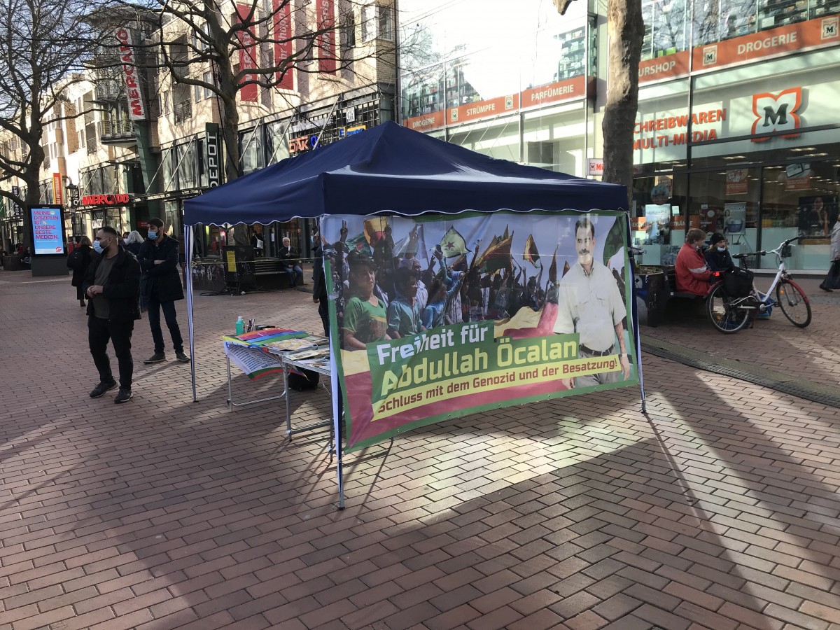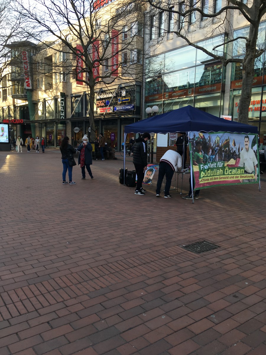 HAMBURG – Almanya’nın Hamburg kentinde TekoJIN ve TCŞ aktivistleri “Tecride, Faşizme, İşgale Son: Bi Hev Re Serhildan” şiarıyla Önder Öcalan’ın fiziki özgürlüğünün sağlanmasının önemi konulu bir stand açtılar.