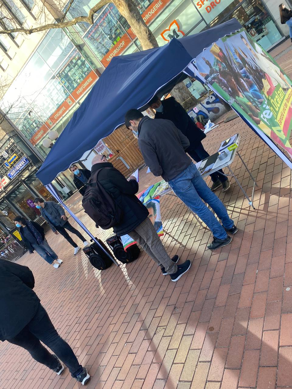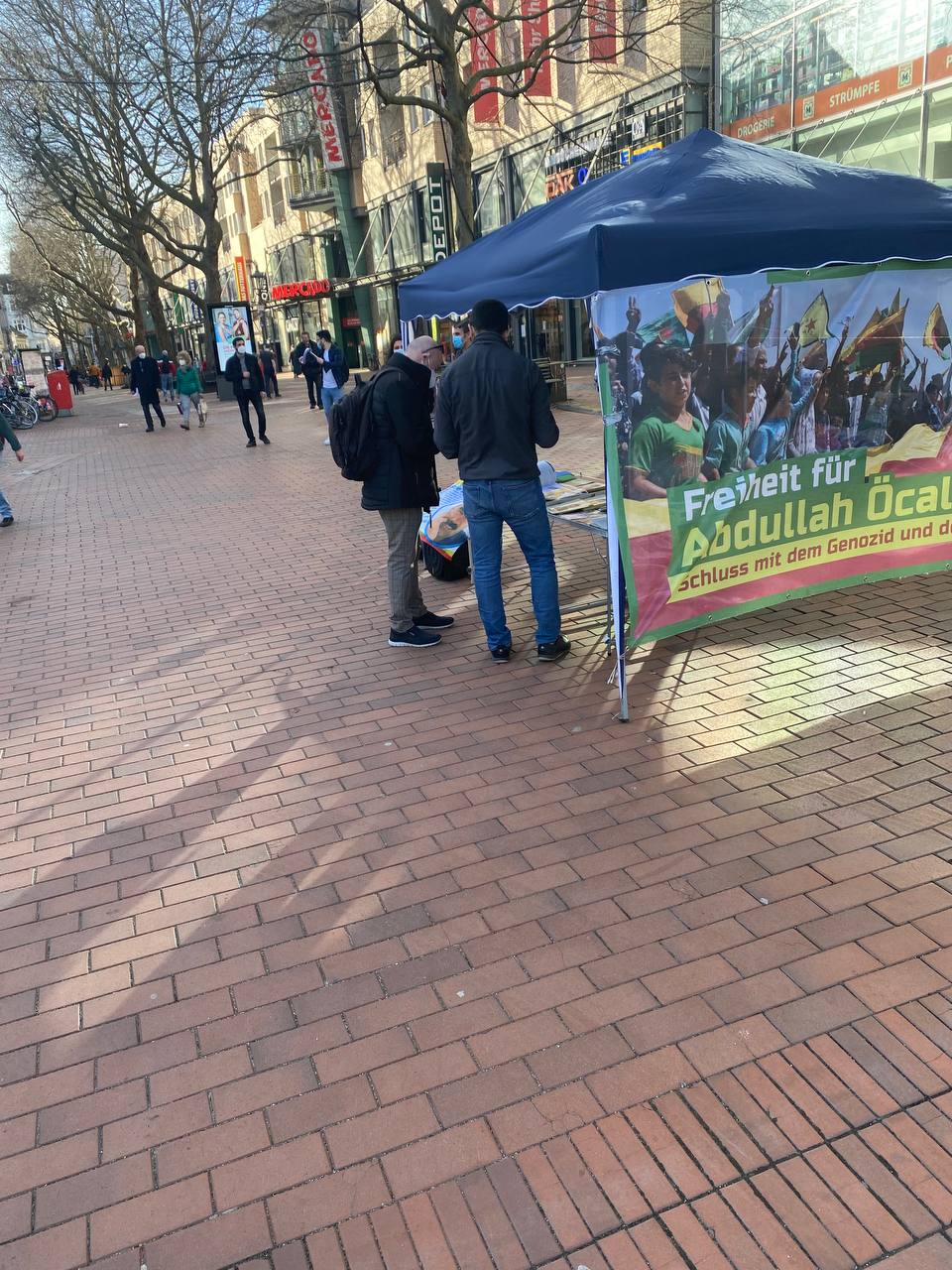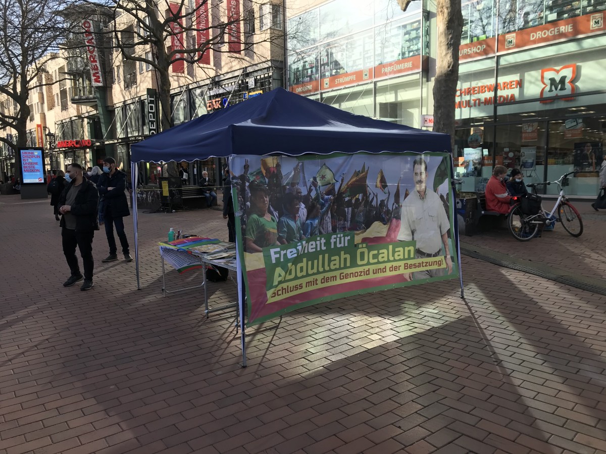 HAMBURG – Almanya’nın Hamburg kentinde TekoJIN ve TCŞ aktivistleri “Tecride, Faşizme, İşgale Son: Bi Hev Re Serhildan” şiarıyla Önder Öcalan’ın fiziki özgürlüğünün sağlanmasının önemi konulu bir stand açtılar.